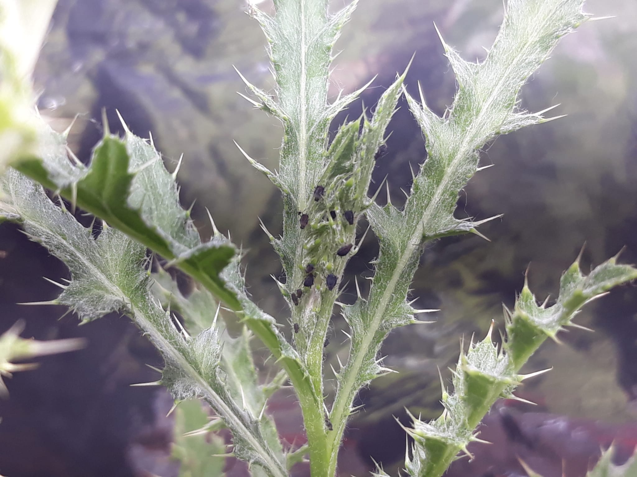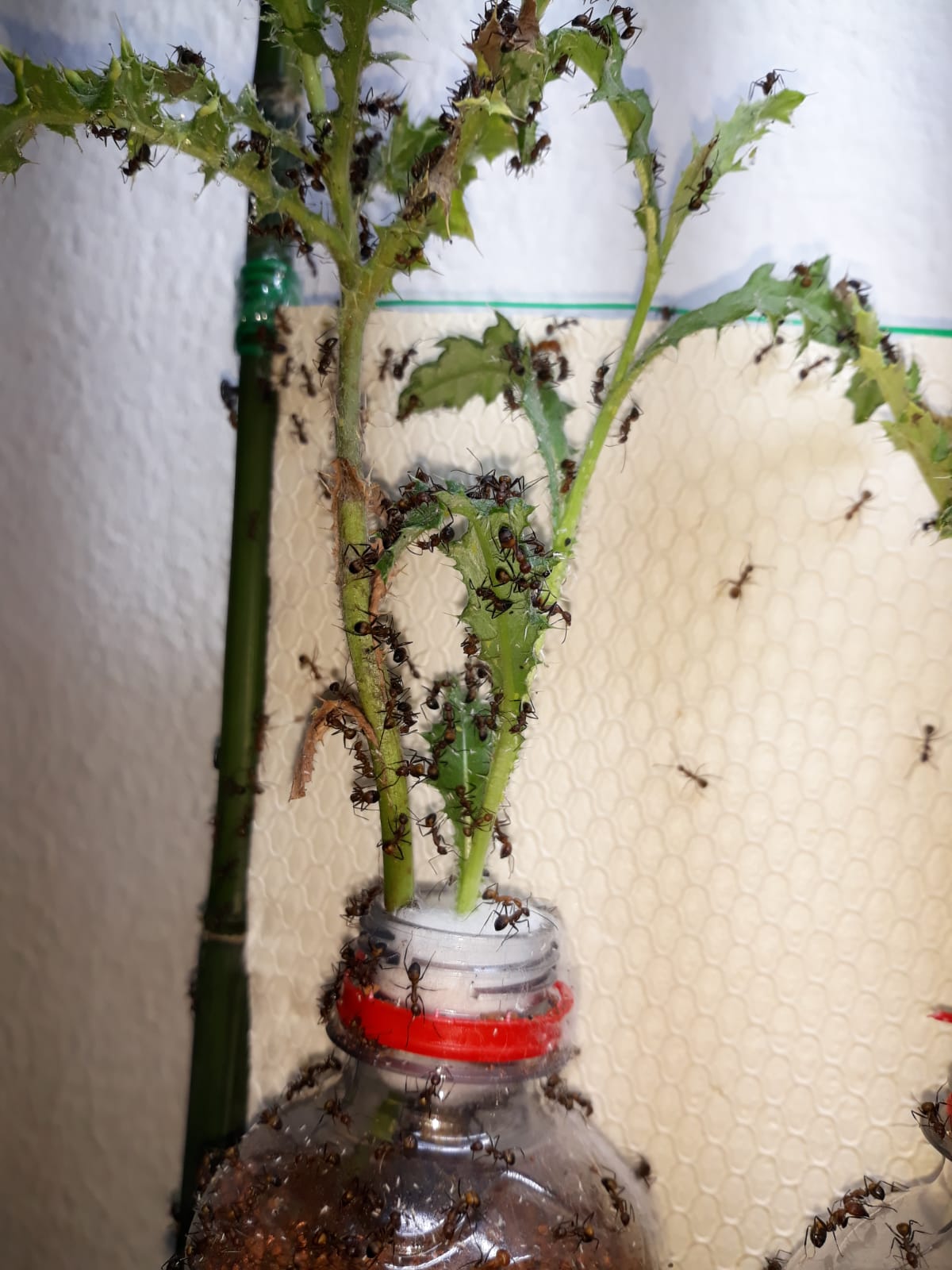 Aber wenn man der Natur Zeit gibt und die richtigen Bedingungen, nimmt sie alles selbst in die Hand. Eine weitere Lausart, hellgrĂŒn, die ich gar nicht in der Natur gesammelt hatte, sind vermutlich aus Dauereiern auf der Pflanze geschlĂŒpft. Was folgte, war eine Massenbesiedlung aller 5 Disteln. Erst die Triebe, dann die Hauptsprosse. GegenwĂ€rtig sind es schon etwa 200 LĂ€use auf den Pflanzen verteilt, mit lokalen Trauben, die schnell wachsen.