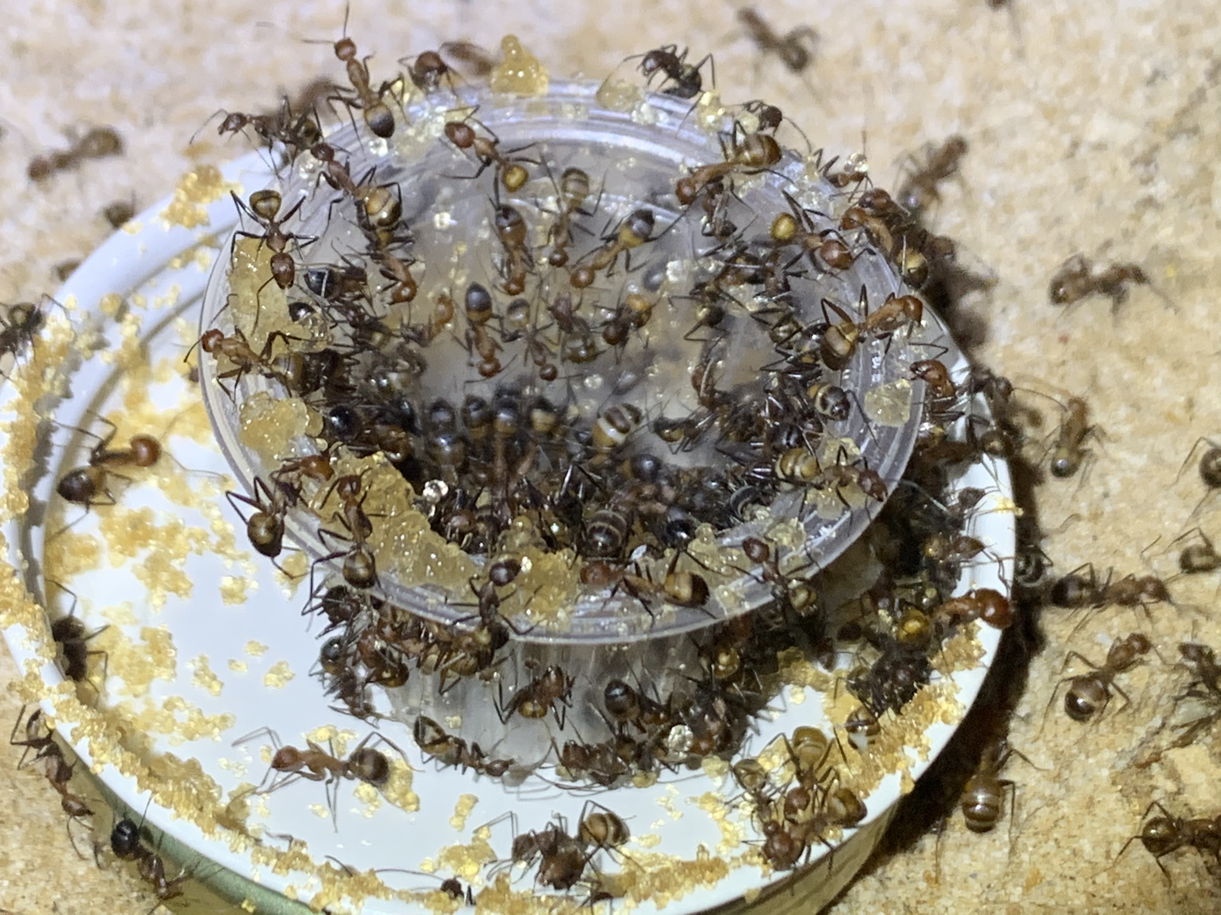 Nun haben meine Camponotus nicobarensis eine kleinere Anlage, die Nester sind zwar Bumsvoll, aber die âBismark-Arenaâ ist nicht viel besucht! â Noch â da wird es in Zukunft fresschen geben. Die âTequilla-Arenaâ ist die bestbesuchteste Arena, da gibt es Wasser, Invertzucker und das mögen meine Girls!