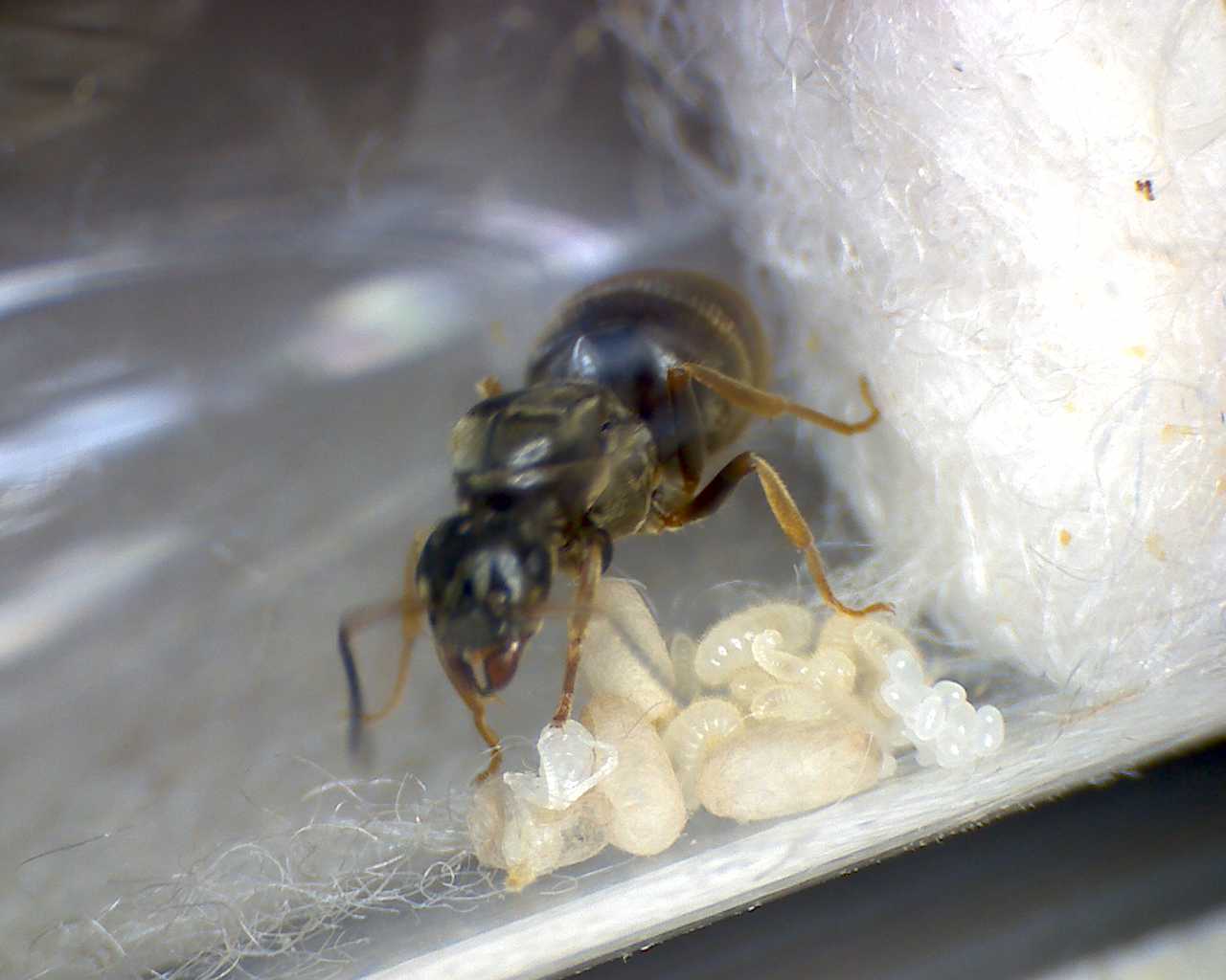 Frisch geschlĂĽpfte Ameisen sehen anders aus, deutlich dunkler und bewegen sich.