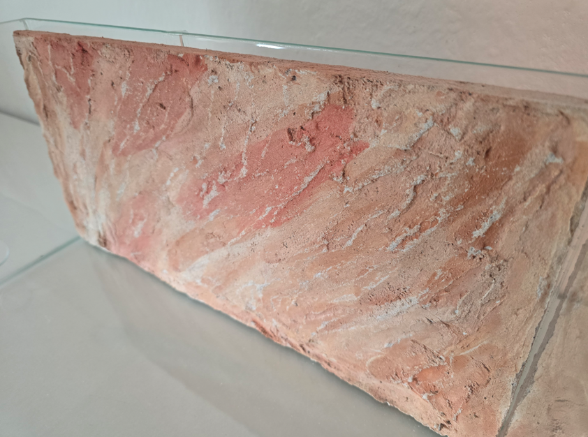 Ich habe dann andersfarbige Steine (Terracotta) genutzt um einen Kontrast aufzubauen. Diese wurden danach mit einem feinkörnigem Sand aufgefüllt um die Luft zwischen den gröberem Granulat