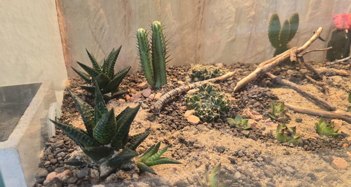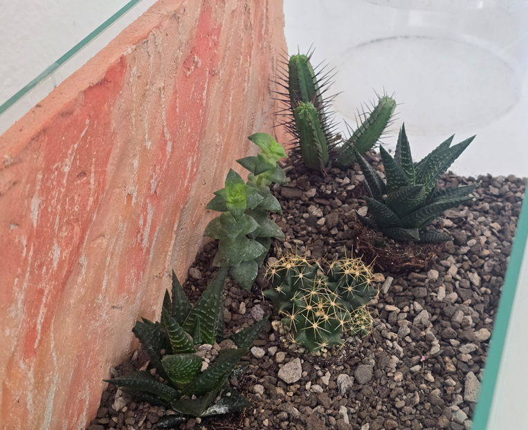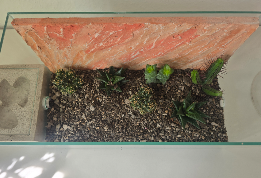 In der Vergangenheit konnte ich bereits einige gute Erfahrungen mit bestimmten Wüsten/Sukkulenten Gewächsen machen und man muss nicht immer Kunststoff-Produkte (Pflanzen-Imitate) einbinden, es geht tatsächlich auch mit lebenden Pflanzen. Wichtig zu wissen: Die Pflege muss man natürlich beachten. Die können viel ab und brauchen wenig Wasser und Nährstoffe, daher eignet sich auch ein Pflanzgranulat. Oder generell feine Steingranulate.