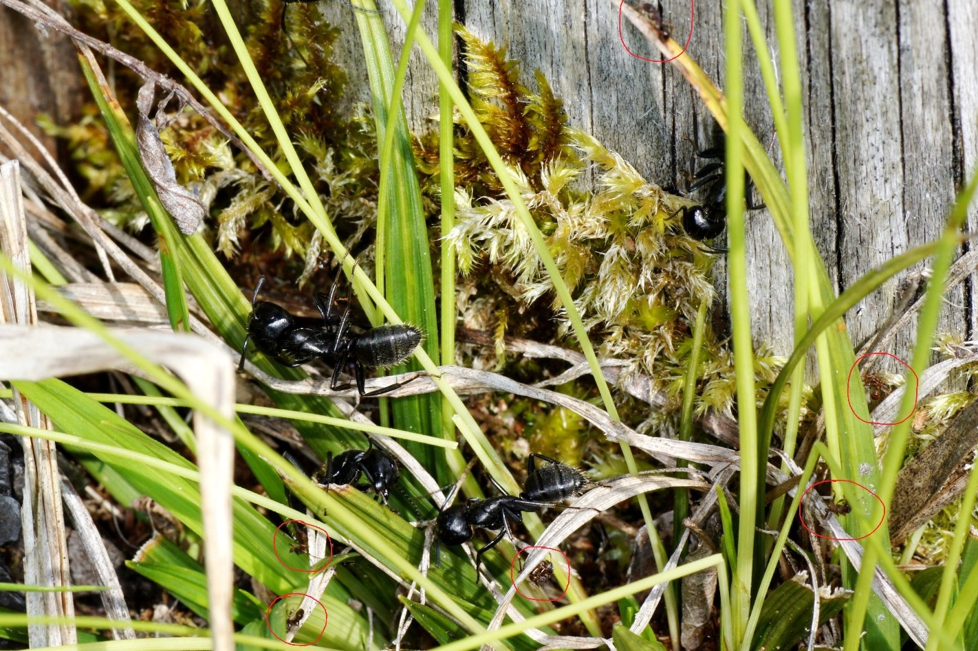 7. Enttäuschend fanden wir die geringe Zahl an Waldameisen. Auf dem riesigen Areal gab es nur 4 Formica pratensis Nester u. 2 von Formica (Raptiformica) sanguinea. Hier F. pratensis: