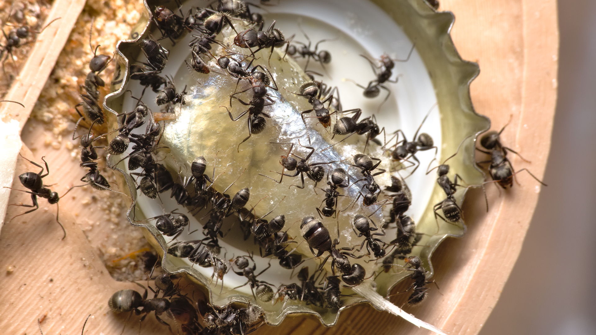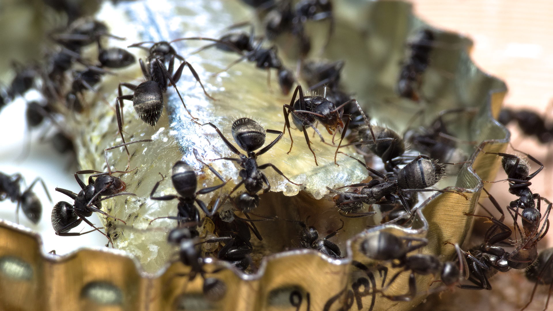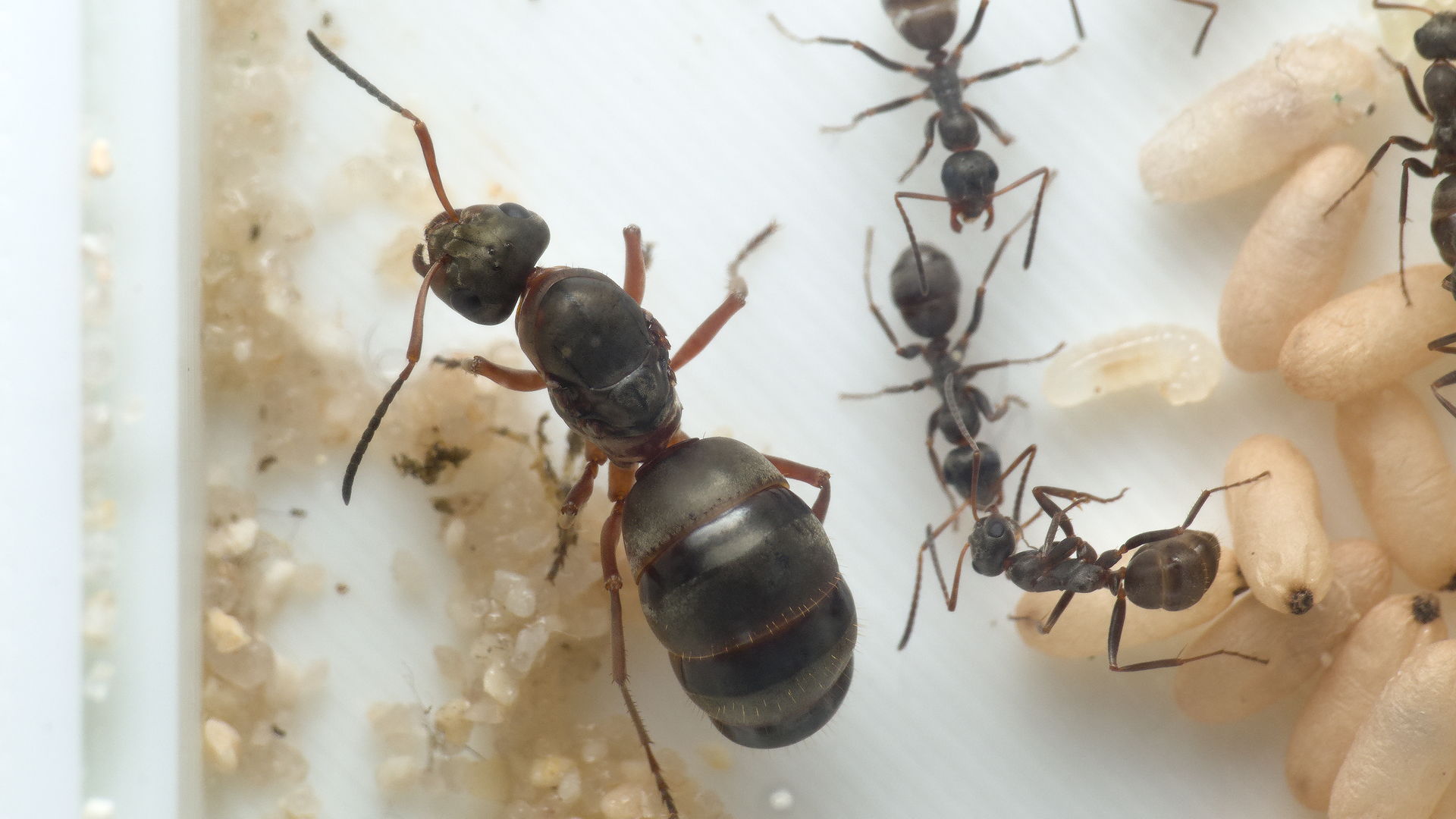 Solenopsis fugax, Camponotus cruentatus und Camponotus brevis fressen Stücke von einem Stint. Heute im Baumarkt in der Zooabteilung im Gefrierfacht entdeckt und gleich mal 100g davon gekauft (Preis war 3€ für 100g, also 30€ / kg)