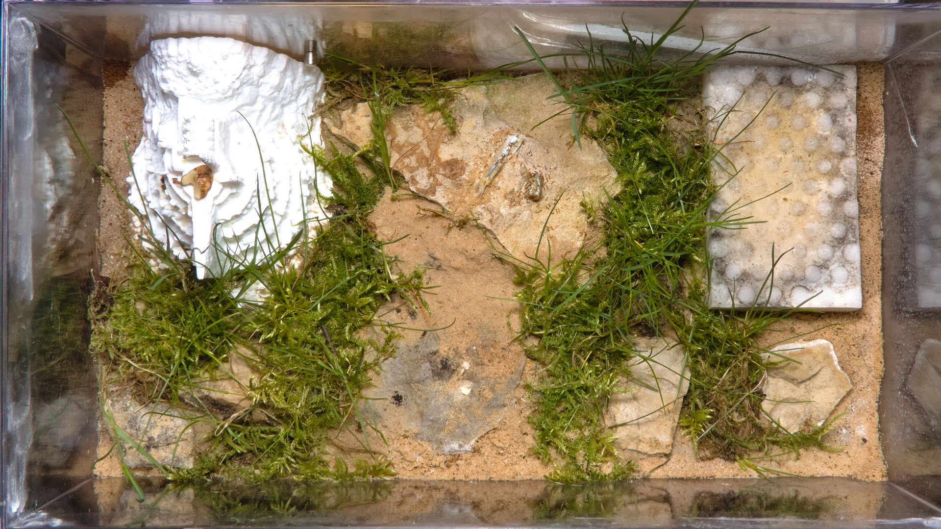 Da ich ja schon recht erfolgreich mit der Algenzucht in dem Becken war, habe ich gedacht, dass ich ein bisschen Moos in die Arena der Solenopsis fugax einsetzen könnte: