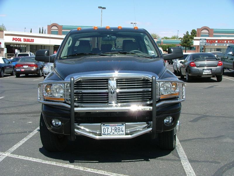Hier auf den nächsten fünf Pix ein wunderschöner Dodge RAM 2500 mit Zwillingsrädern. *schwärm* (Man beachte das "Gehänge", das sich der Eigentümer an die Anhängerkupplung gebaut hat :rolleyes: :D )