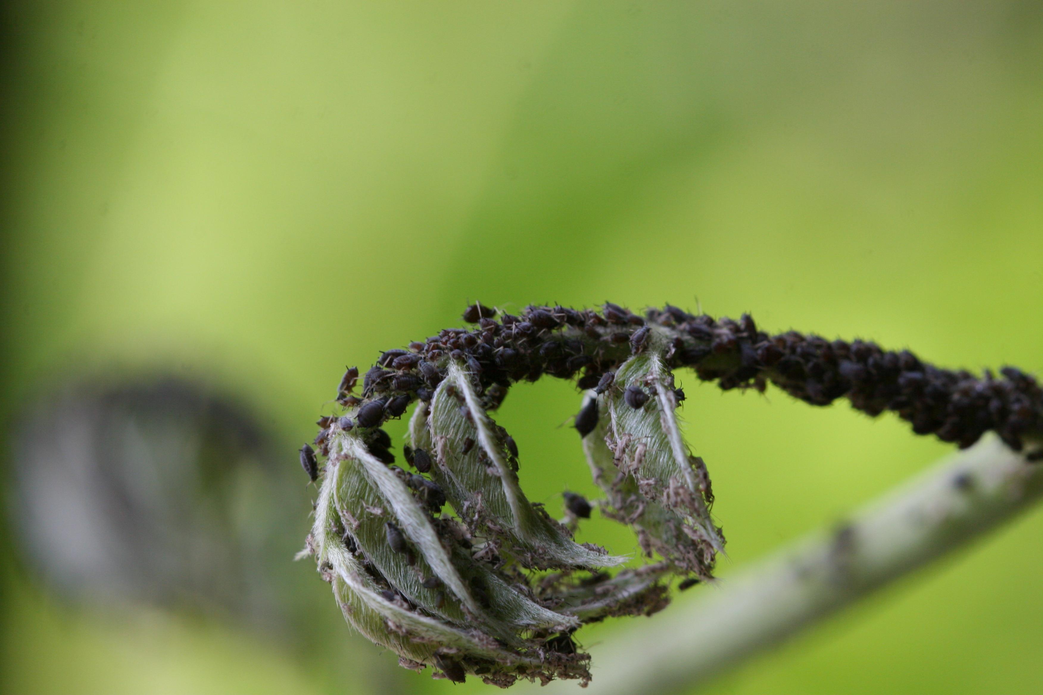 Zu meiner großen Freude entdeckte ich 10.000 Blattläuse auf einer Schlingpflanze, die auf meinen Balkon hochwächst.
