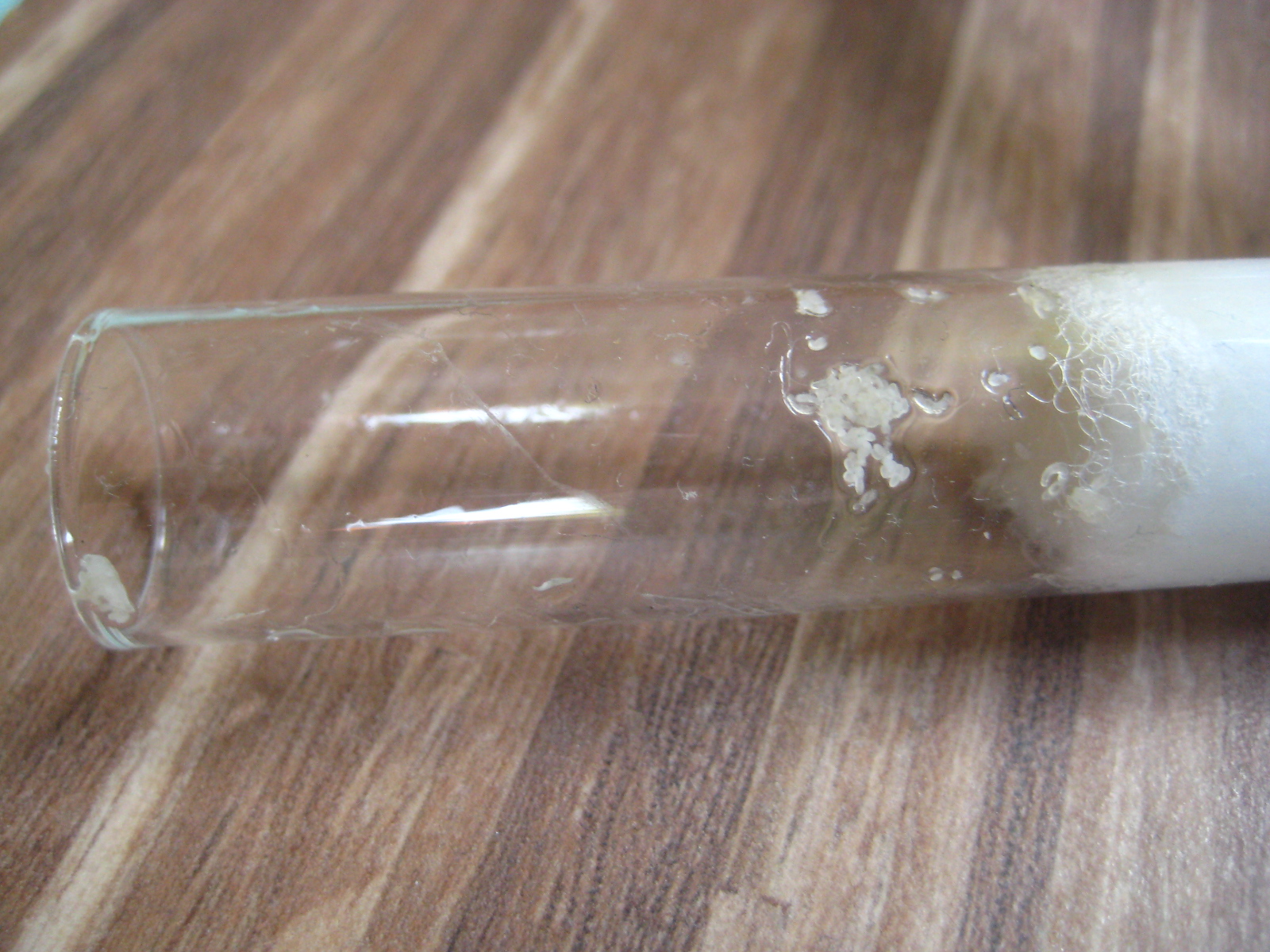 Die Gynen sind seit dem 14.07.2009 in diesem Reagenzglas, ich habe es nicht umgelagert, auch nicht in einer Schräglage positioniert gehabt. Bei den letzten Kontrollen war alles Tip-Top. Mich verwundert das alles etwas, ich habe jeden Reagenzglaspfropfen mit der gleichen Wattemenge hergestellt. Und warum passiert das erst nach ca. einem Monat? Die Reagenzgläser liegen alle gut geschützt in einer Kommode. Sehr seltsam alles.