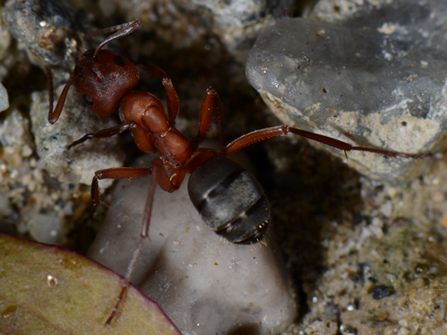 Camponotus war auch vertreten. Eine Major-Arbeiterin soll getragen werden... passierte natürlich genau, als ich gerade weiter wollte, da hatten sie es leider schon fast ins Gras geschafft.