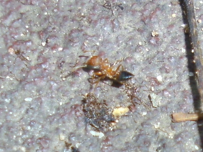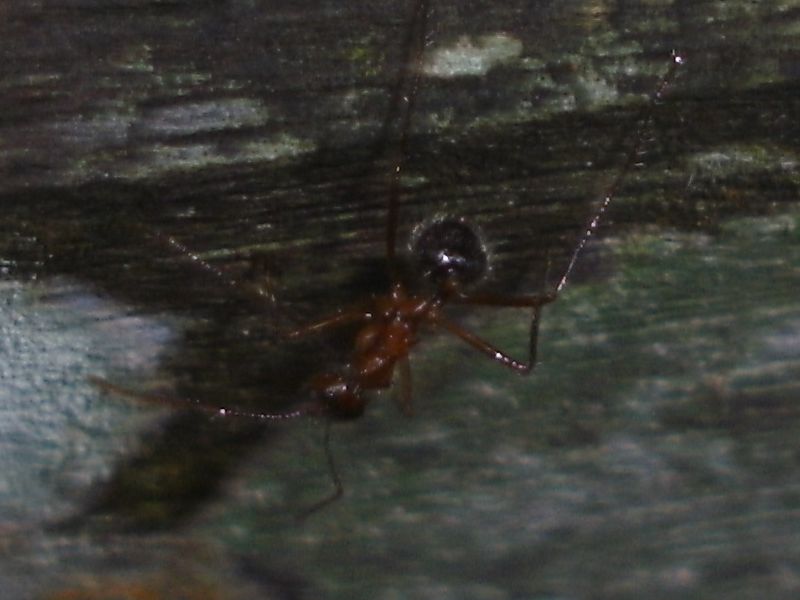 Was die kleine dort gerade aufnimmt ist übrigens mein Schweiß. Lediglich bei dieser und zwei weiterer Polyrhachis spp. konnte ich beobachten, dass sie sich auf meinen Schweiß stürzten als wäre es der reinste Honigtau. Andere Gattungen und Arten waren hingegen überhaupt nicht interessiert.