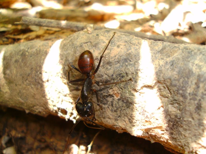 Auch diese ?Polyrhachis sp.? war sehr interessiert an meinem Schweiß auf dem Baumstamm und schlürfte ihn wie Honigtau.