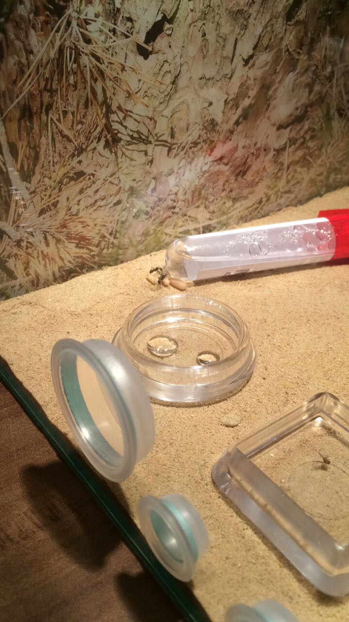 Ich bin grad noch auf Arbeit und meine Frau schickt mir grad Fotos von meinen Camponotus rufoglaucus. Frage: Sie sind grad in der Gründungsphase und haben auch erst 5 Arbeiterinnen, sie wohnen momentan noch im RG und haben meiner Meinung nach noch nie einen Fuß in die bereitgestellte Farm gesetzt.