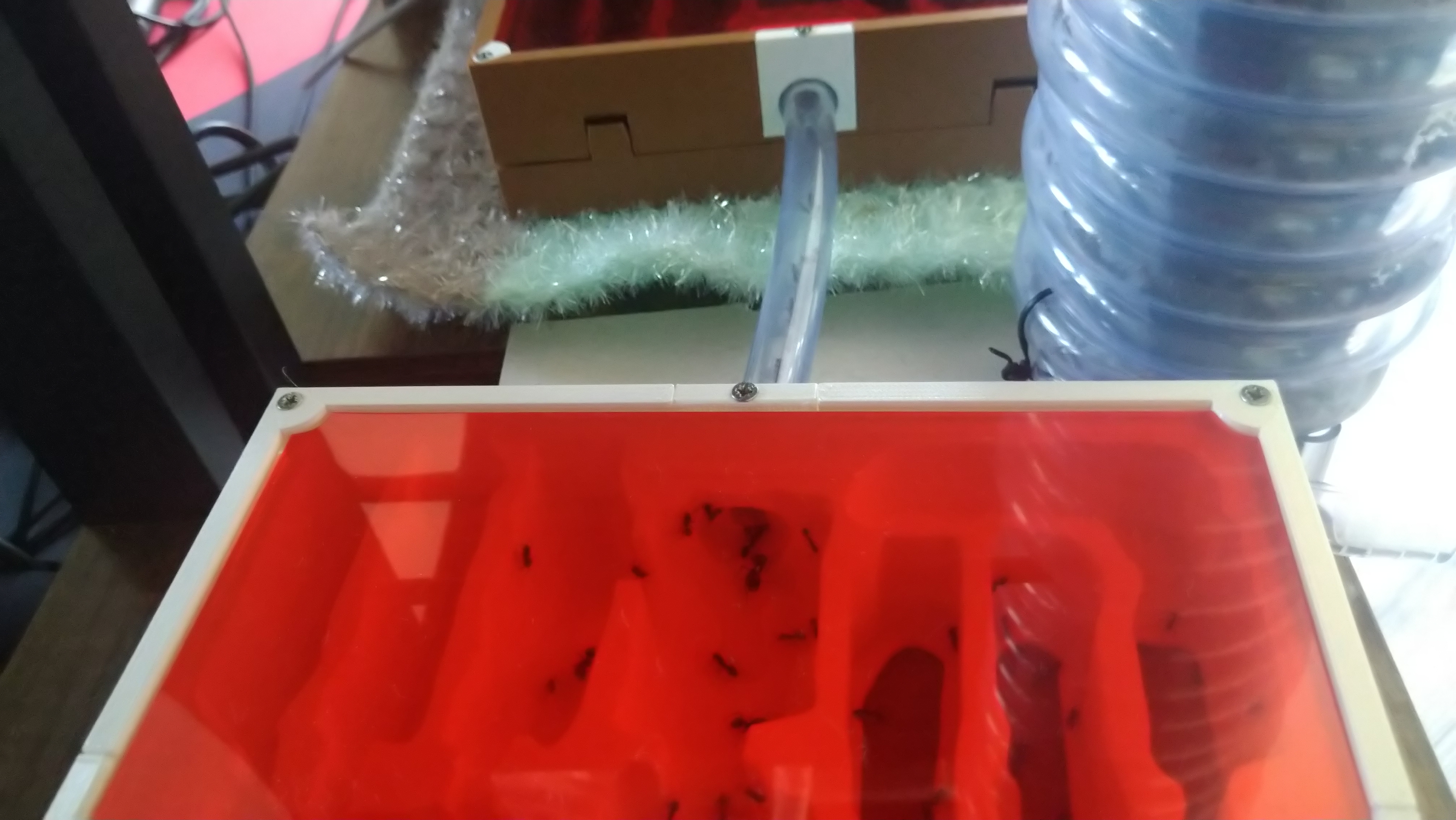 Die Arena 30x20x20 die ich noch übrig habe (von meinen verstorbenen Camponotus largiceps) wird jetzt wohl auch zum Einsatz kommen. Eigentlich arbeite ich ja nur mit 10cm hohen Arenen da Messor sowieso kein extremer Ausbruch Profi ist. Aber eine neue Arena zu kaufen wenn ich noch eine habe, auch wenn die 20cm hoch ist, sehe ich dann doch nicht ein.