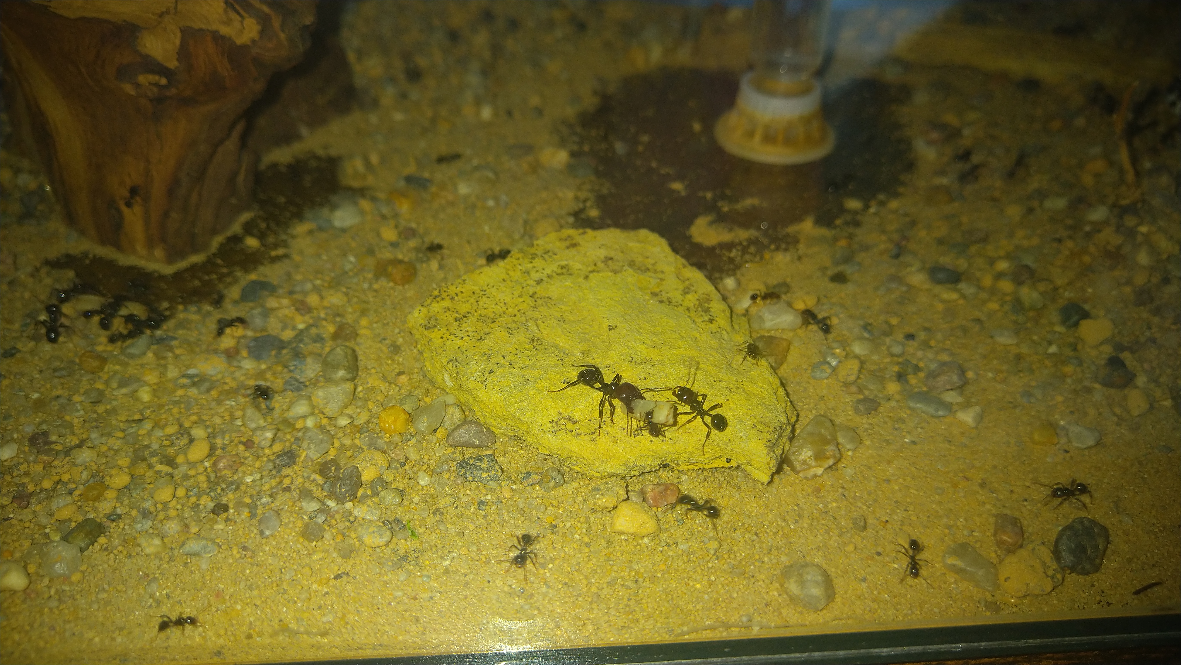 Aktivität in den Arenen gibt es immer und rund um die Uhr, allerdings ist Morgens und Abends durtlich mehr los. Und auch wenn es in einer Arena sozusagen nichts zu holen gibt, wird diese nicht mehr stark belaufen. Erst wenn ich Wasser oder Körner anbiete, ist 1-2h großes Krabbeln, danach wird sich auf die Futerquelle konzentriert.