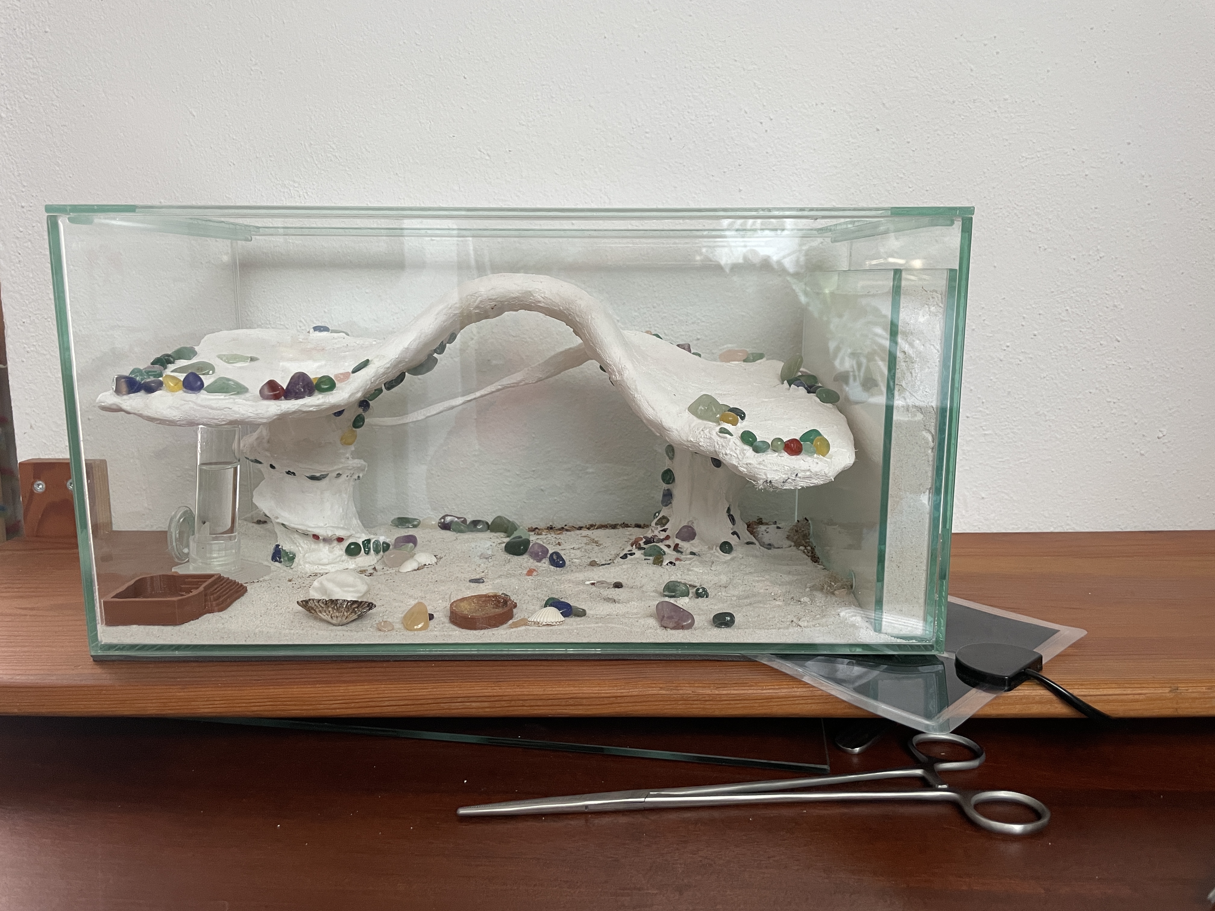 Solltet ihr die Heizmatte mehr unter das Formicarium platzieren, erhöht es etwas um Hitzestau zu vermeiden.