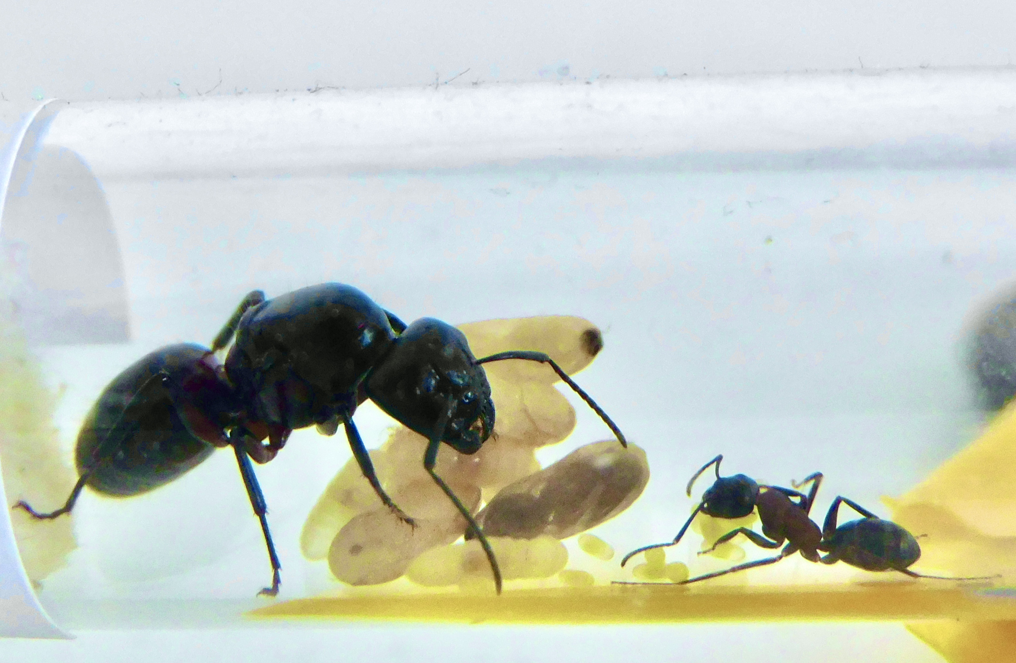 Ich habe die Kamera (Handy) den ganzen vorherigen Tag laufen lassen (immer wieder Stopp, löschen, einschalten) leider nix passiert. Dann hatte ich natürlich Angst dass die Arbeiterin genau in der Nacht schlüpft.