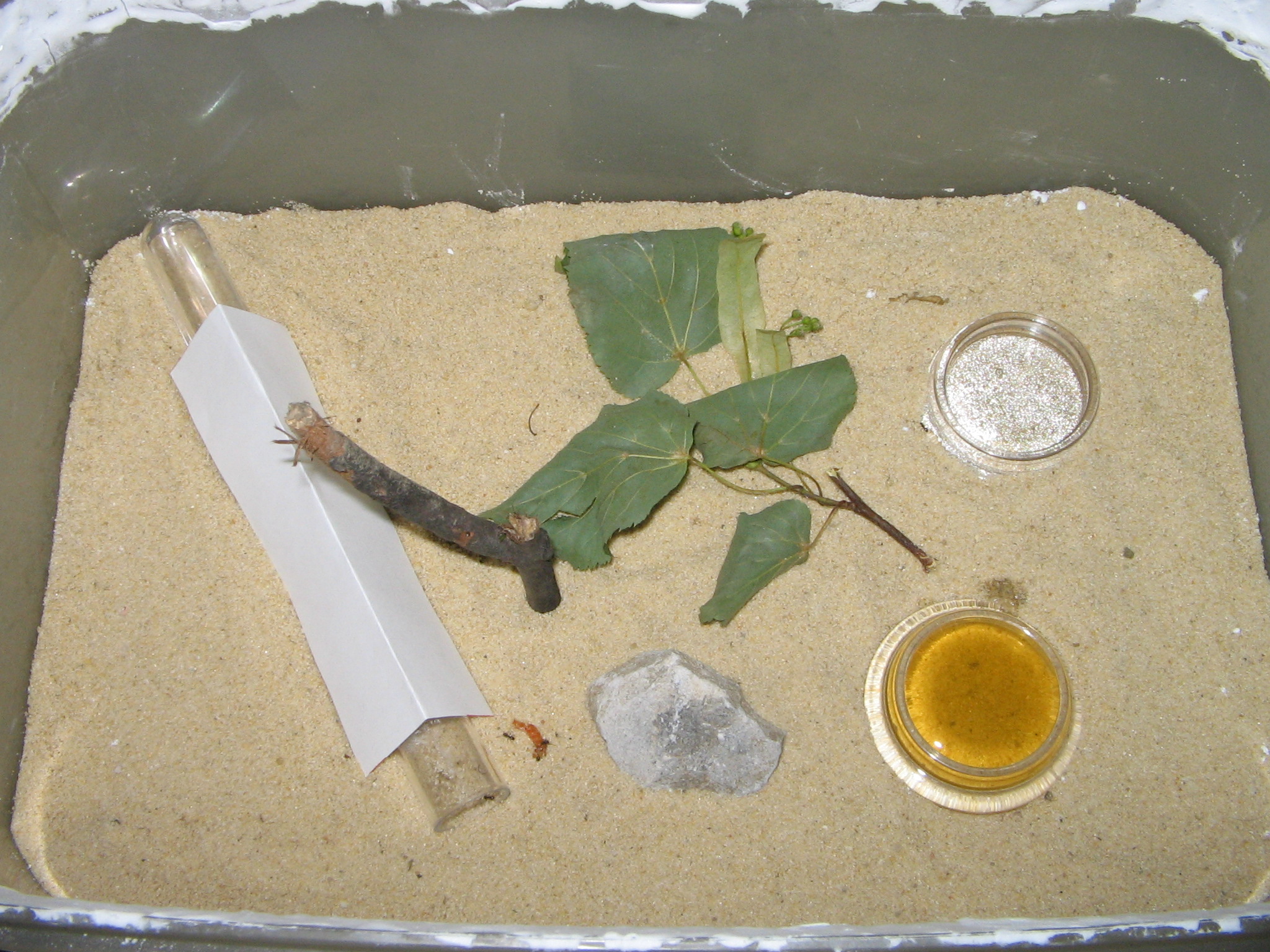 Um eventuellen Fragen vorzubeugen: Der Sand ist vom Spielplatz, allerdings noch nicht abgekocht, sollte ich das besser noch machen? Das gleiche gilt fĂŒr den Ast mit den BlĂ€ttern und dem Stein. RG und die beiden Töpfchen sind von AntStore.