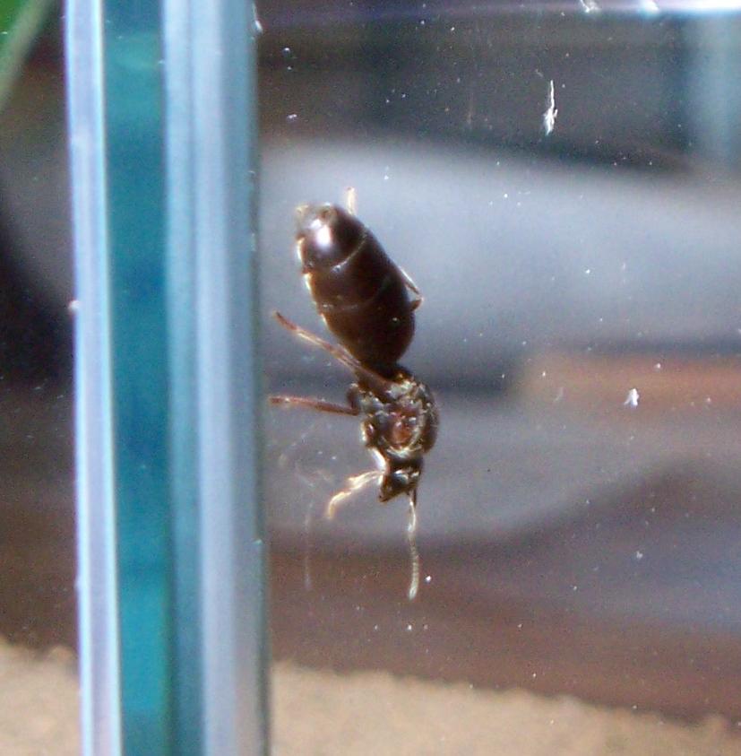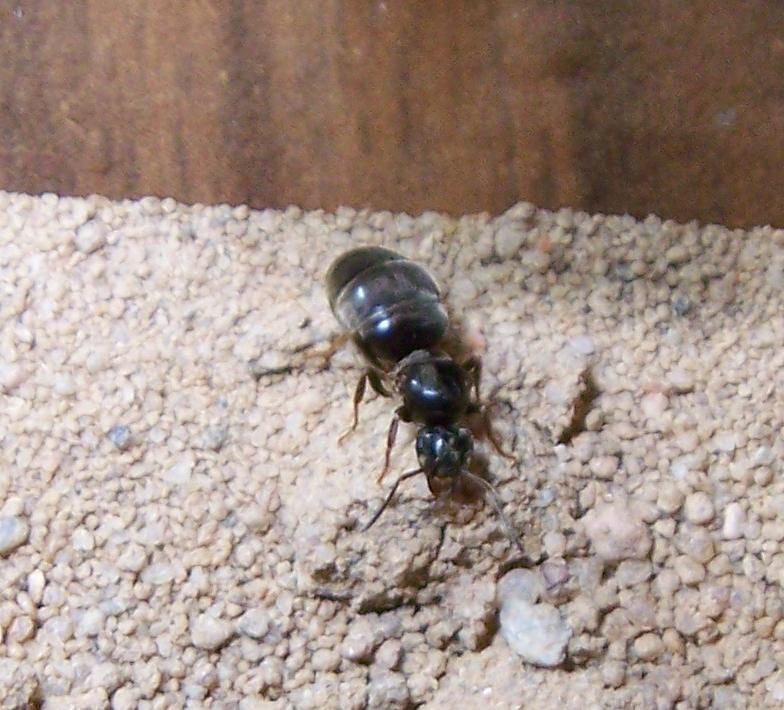 Beide hatten ihre Flügel bereits abgeworfen. Ich VERMUTE, ohne große Ahnung zu haben, einfach mal, es handelt sich um Lasius niger, aber da frage ich natürlich noch einmal nach.
