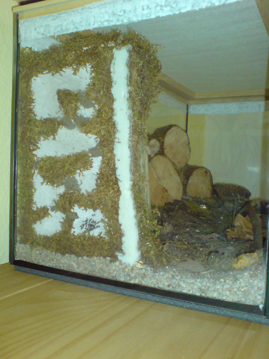 [/font] [font=Arial]Ich habe am 13.07.2007 begonnen mein Formicarium zu bauen, ich hatte mich für ein Glasbecken der Größe (60x30x30)cm entschieden, mit gebackener Erde als Bodengrund und Porenbeton als Nest. Unter dem Glasbecken befindet sich eine Aquariummatte als Stoßdämmung.