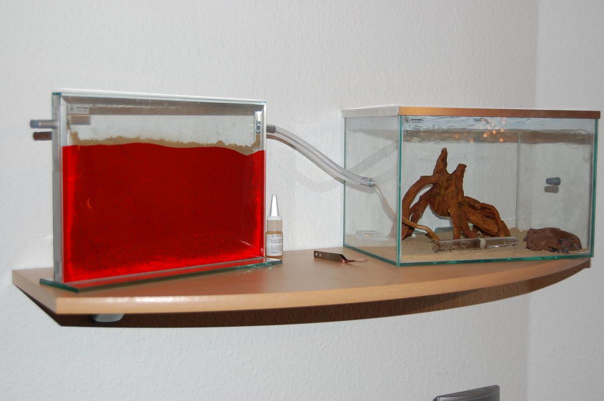 Ich bin aber kein großer Bastler und wollte mir einfach (auch für den Anfang um zu gucken wie das Läuft und wie schnell sowas wächst) einfach ein Gehege kaufen. So für Anfäner gibt es eine Farm mit einem Aquarium über ein Schlachverbunden zu kaufen.