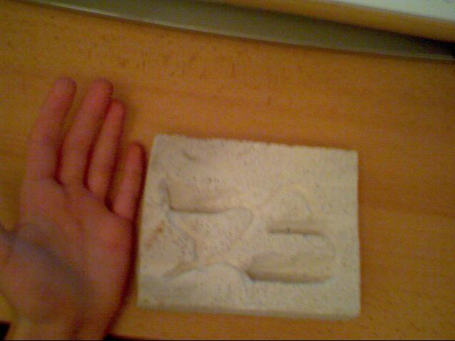 Ich habe nochmal schnell mit der Webcam ein Bild vom ytong gemacht, er ist wirklich klein, ma sieht ja meine Hand daneben