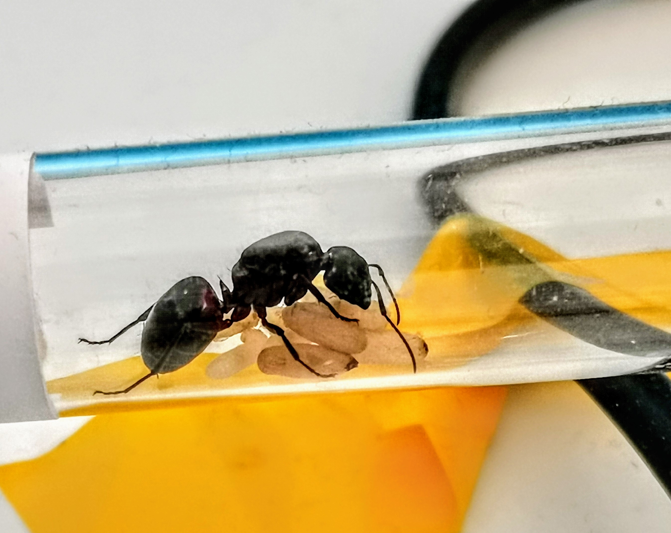 Hab vor ein paar Wochen eine Camponotus ligniperda Königin mit Brut erhalten. Die Winterruhe hat sie inzwischen beendet und sie wird jetzt bei 22C gehalten.