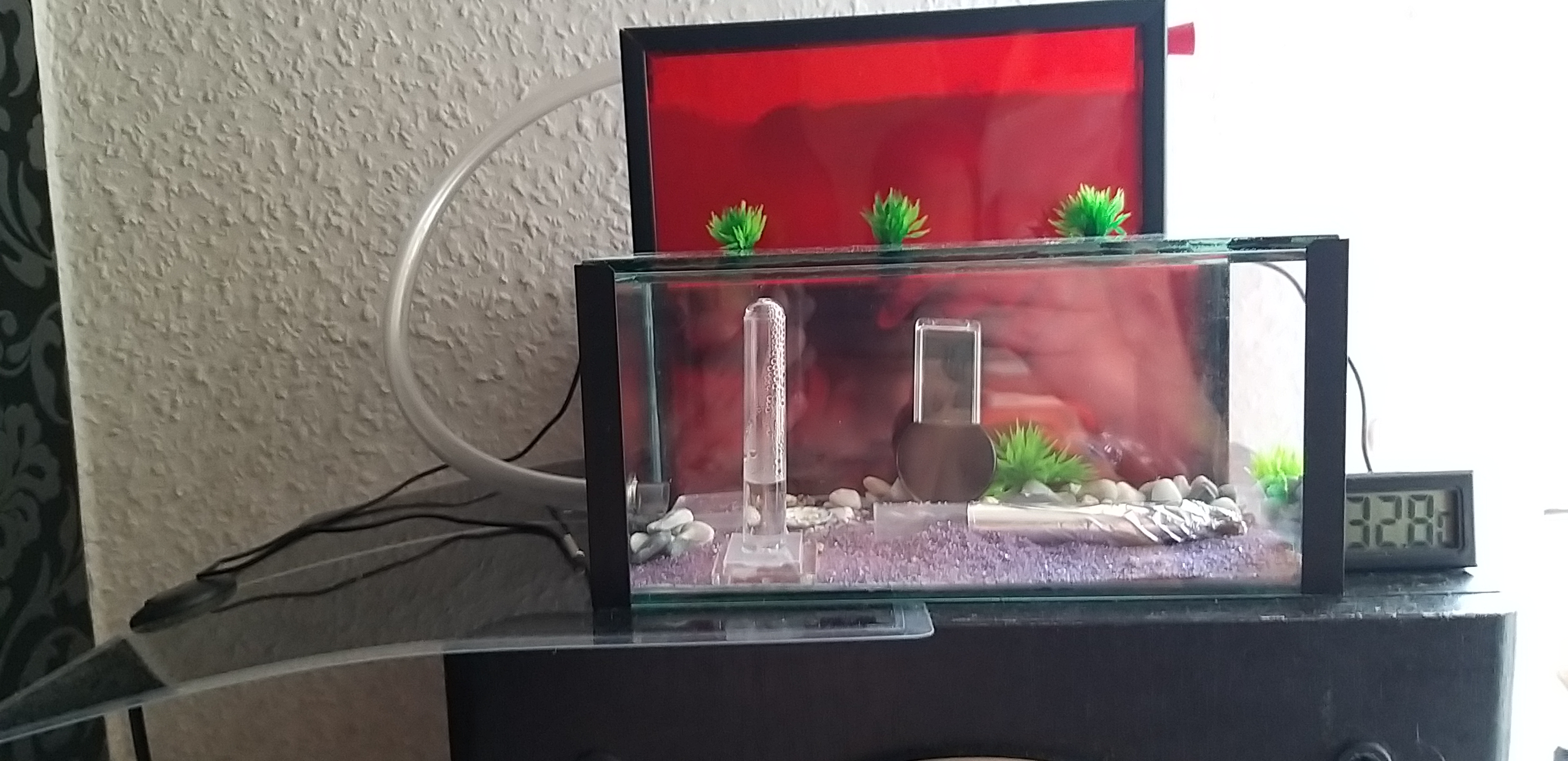 Dan habe ich mein Nest wohl nicht so gut platziert: (Und nicht erschrecken die 32 Grad ist die Temperatur der heizmatte, in der Arena ist es 26 grad)