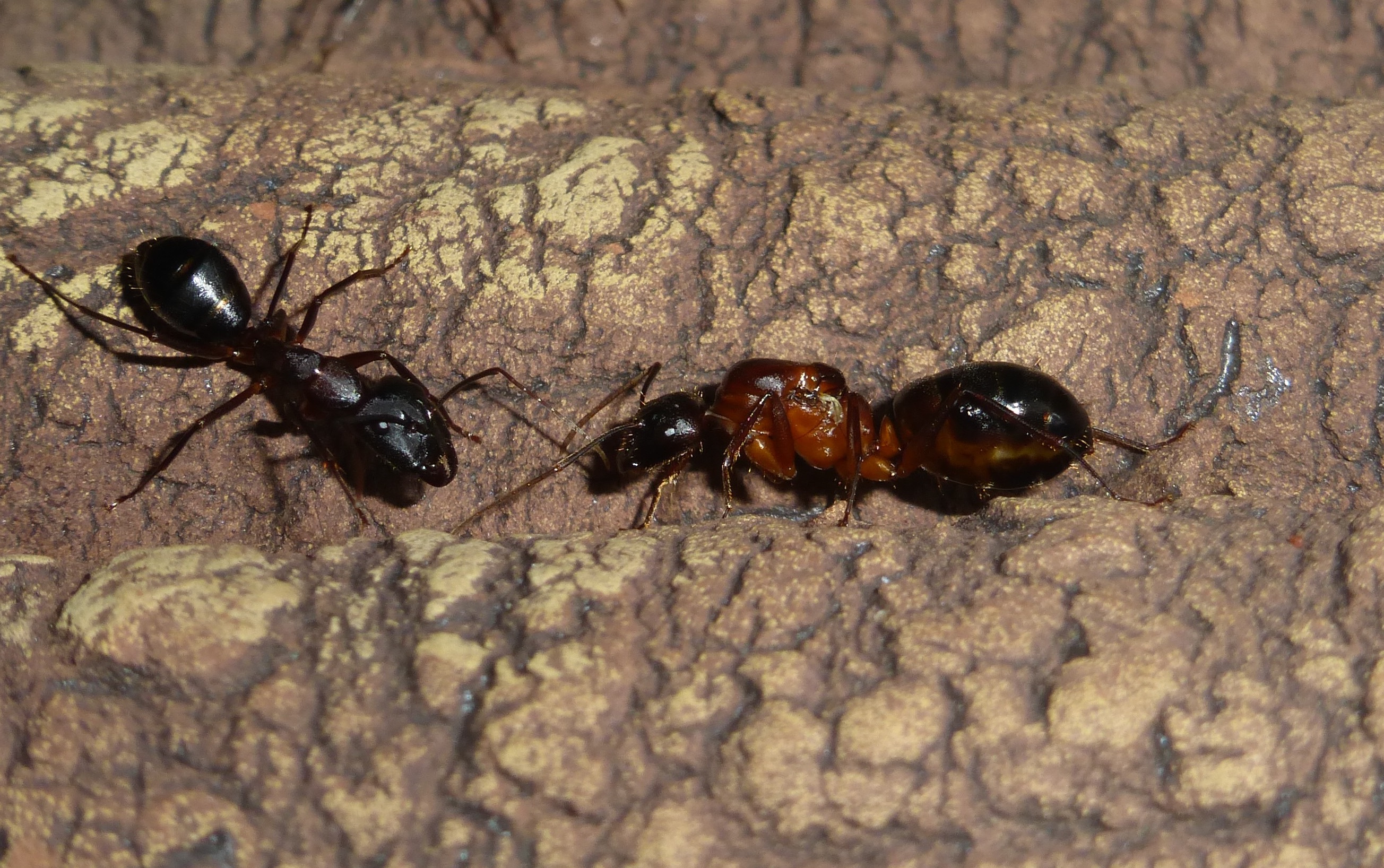 Um jetzt LebensverhÀltnisse, wie auch Futterversorgung Artgerecht zu gestallt, muss ich zu erst mal wissen, um welche Art es sich handelt. Dazu im Anhang mal 2 Bilder. Ausgemacht habe ich 3 Verschiedene Grössen. Die meisten sind ca. 8mm lang, recht schlank und wohl "normale" Arbeiter. Ein paar wenige ( max. 5 ) sind ca. 1/3 grösser und krÀftiger. Eine Queen habe ich auch ausgemacht, diese ist ca. 15-20mm lang. Deutlich krÀftiger und zumindest laut Beschreibung soll auch eine dabei sein.
