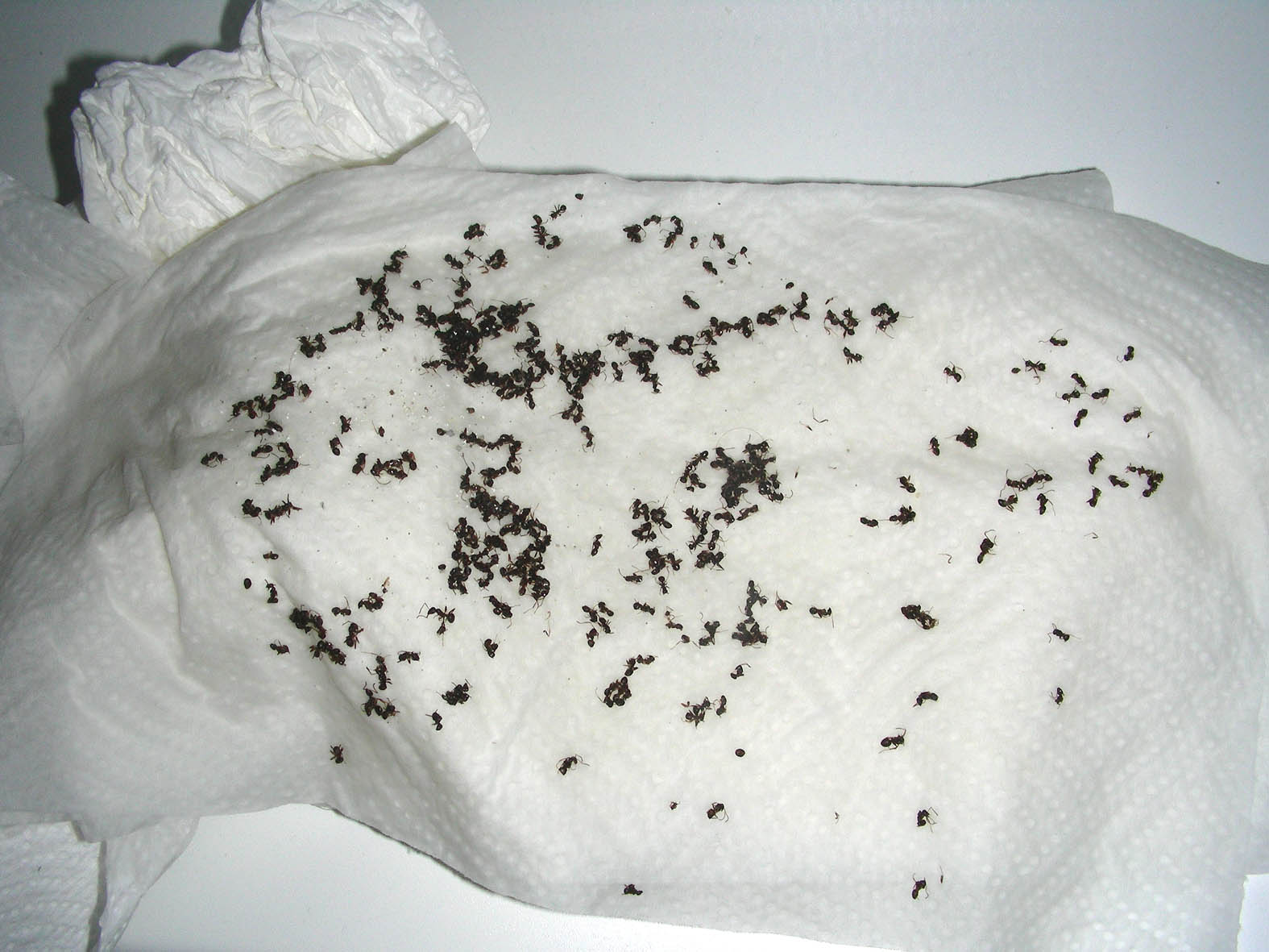 25.06.2011 Meine toten oder sterbenden Ameisen bekommen so gut wie immer meine F. cunicularia. Heute zum Beispiel gab es wieder eine sterbende C. ligniperdus. F. cunicularia nehmen sehr gerne Ameisen als Larvennahrung an.