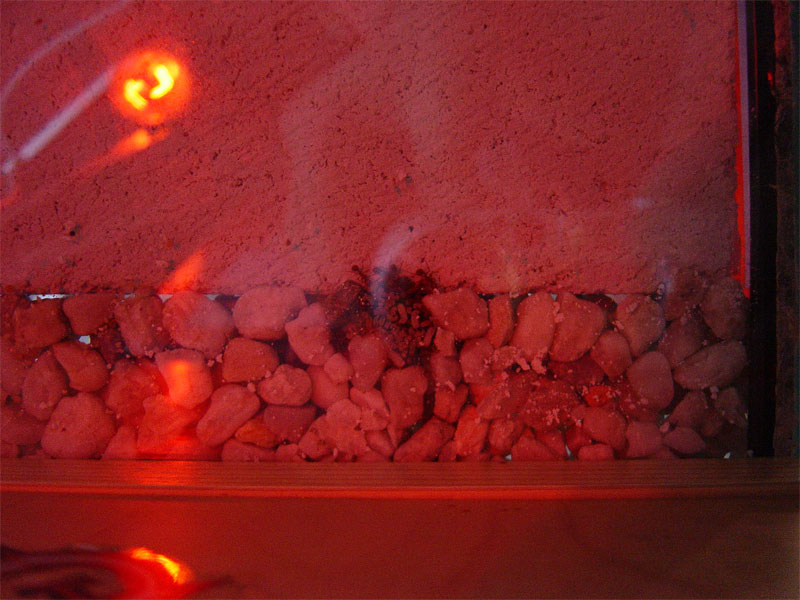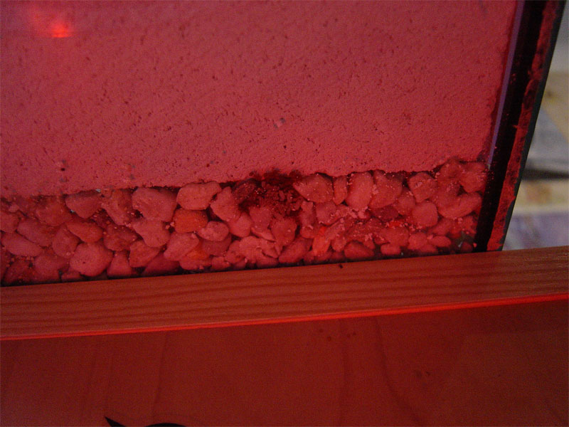 Bild 5: Blick auf den Ytongstein => 2 getrennte (Ganz unten/links und rechts) Kammern wurden geöffnet, in der Hoffnung den Ameisen einen Umzug ins Ytongnest schmackhaft zu machen. Unter dem groben Kies siedele momentan.