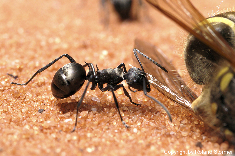 Leider nur mit dem eingebauten Blitz aufgenommen, aber im "Notfall" geht der auch. Die Akkus meiner Sony Alpha 100 und vom Blitz waren leer und ich wollte die Bilder der Polyrhachis dives unbedingt festhalten. Also nahm ich die Panasonic Lumix in die Hand.
