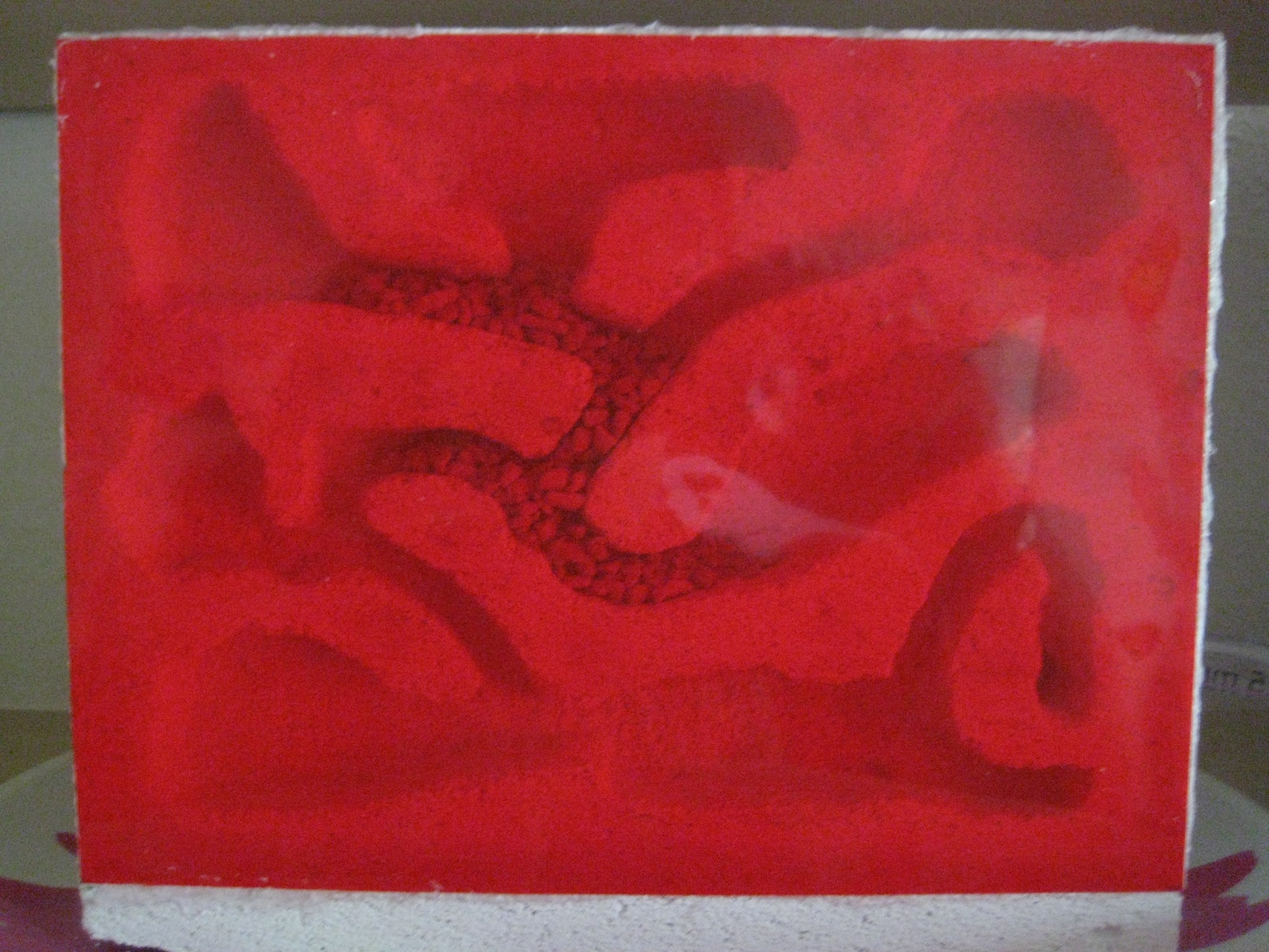 [font=Calibri]14.07.2008 Dreizehnter Tag Heute war es so weit, ich habe mir in einem Bastelladen eine rote, transparente Folie geholt und Silikon zum befestigen der Folie am Y-Tong Nest. Hat auch soweit alles ganz gut geklappt, ich habe mich entschieden die rote Folie direkt an den Y-Tong Stein zu befestigen, die Idee die Folie auf eine Glasscheibe zu kleben und diese dann an dem Stein zu befestigen hat sich als nicht empfehlenswert herausgestellt, da es den Einblick in das Nest deutlich mindert! Den Verbindungsgang zu den Kammern habe ich mit ein paar Seramiskörnern aufgefüllt, damit die Ameisen die nicht benötigten Kammern nicht als Mülldeponie nutzen können. Wenn sie den Platz irgendwann für die Brut benötigen, werden sie die Seramiskörner schon entfernen.[/font]
