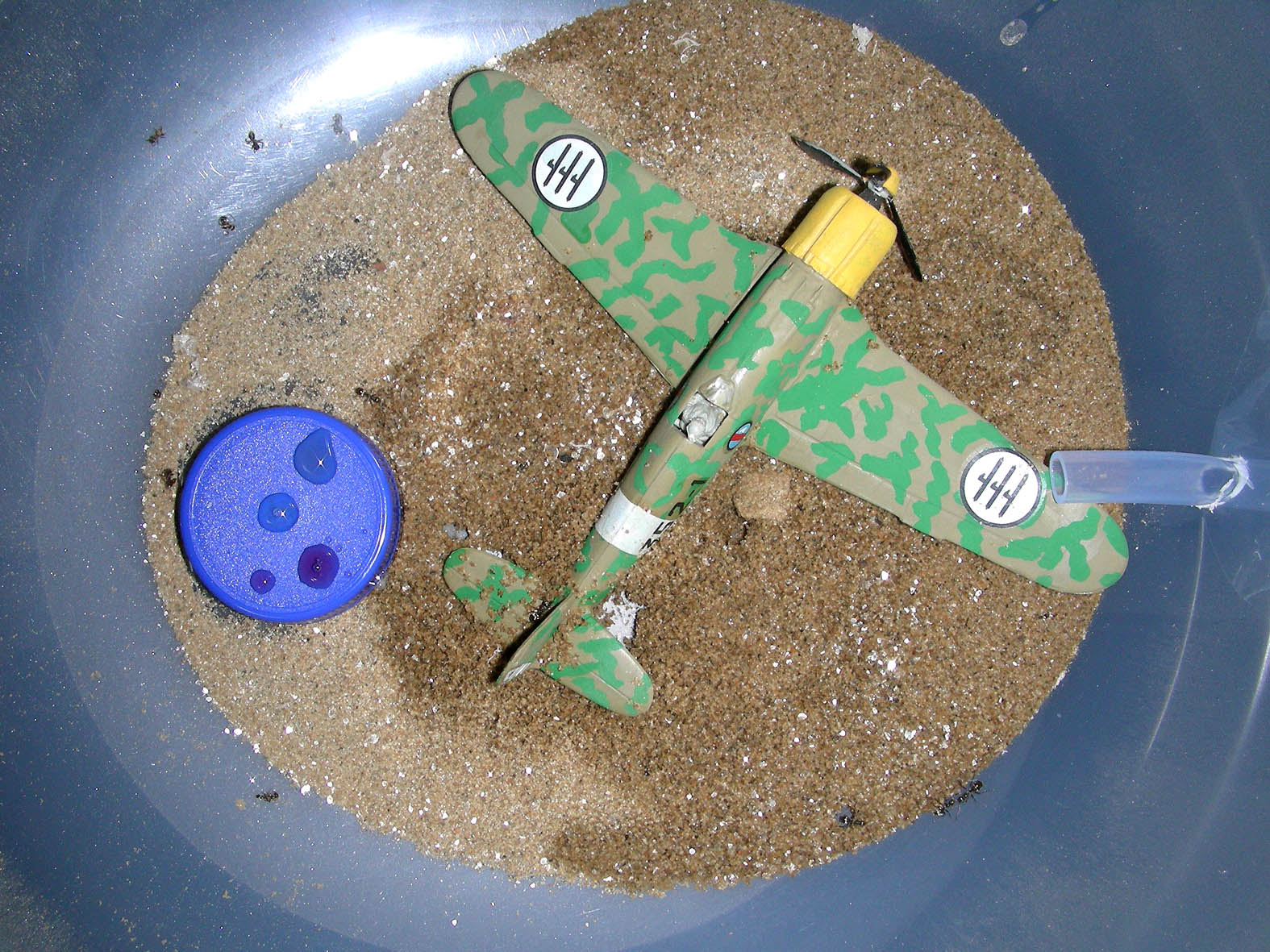 Das unterband ich bis jetzt ganz gut indem ich diese komplett mit Uhu-Alleskleber beschmierte und alles mit einer harten Schicht Uhu überzogen habe - durch den sie sich nicht mehr beißen können. Der Berg an weißen Uhu-Klebepads Teilchen wurde aber trotzdem von Tag zu Tag größer und werd wohl doch bald was anderes als Schlauch-Formikarium-Abdichtung verwenden müssen. Alle Arten von Insekten wurden bis jetzt einwandfrei bis zum Formikarium durch den Schlauch transportiert und dies auch durch größere Steigungen.