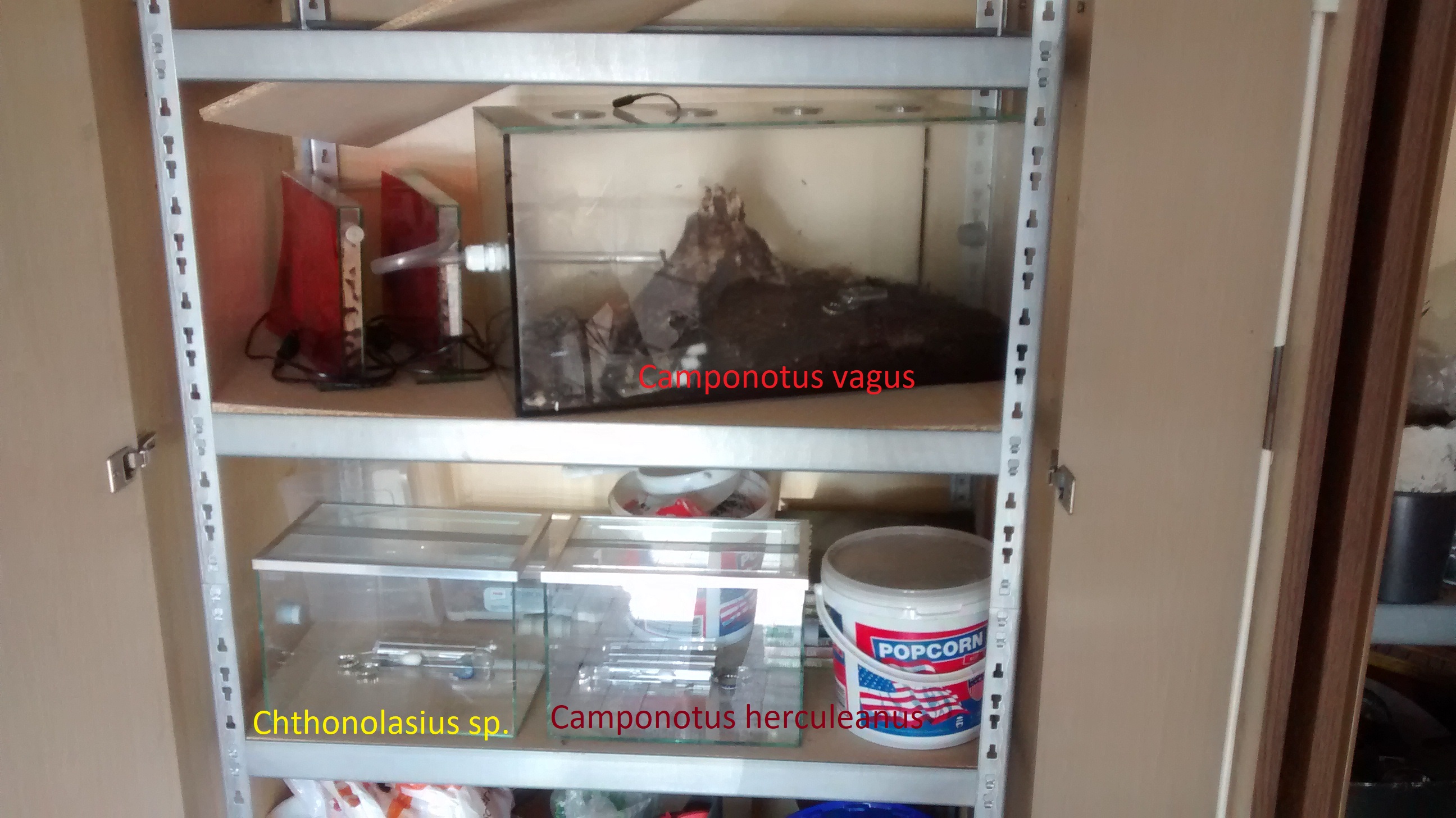 Ameisenhaltung: Camponotus vagus, Chthonolasius Gründungsversuch/HB, Formica (Serviformica) fusca, Lasius (Cautolasius) flavus