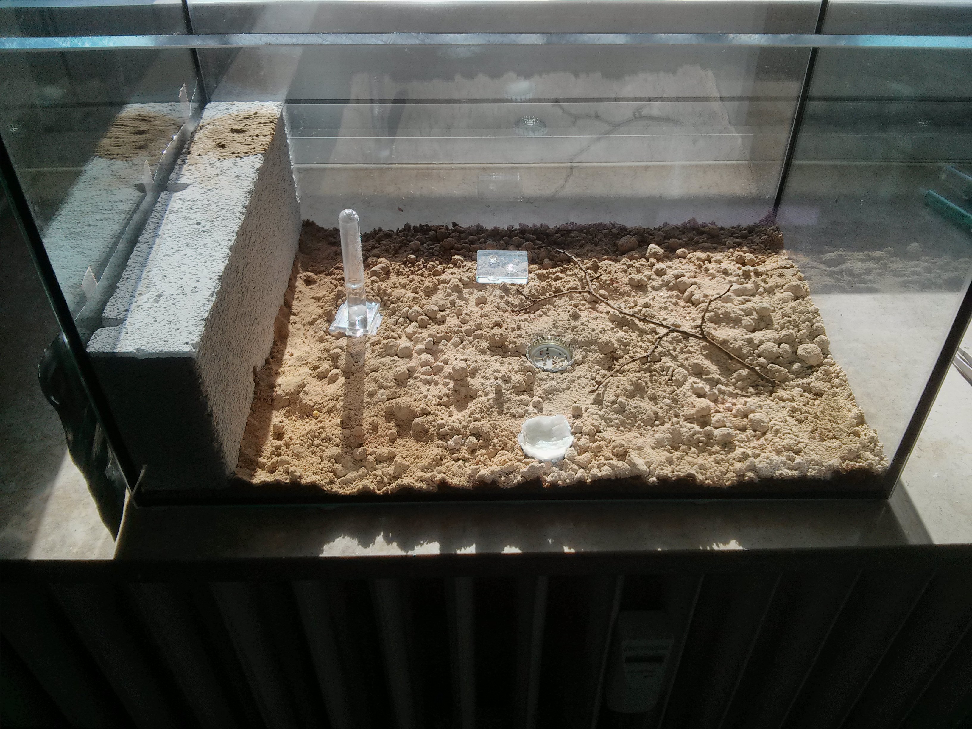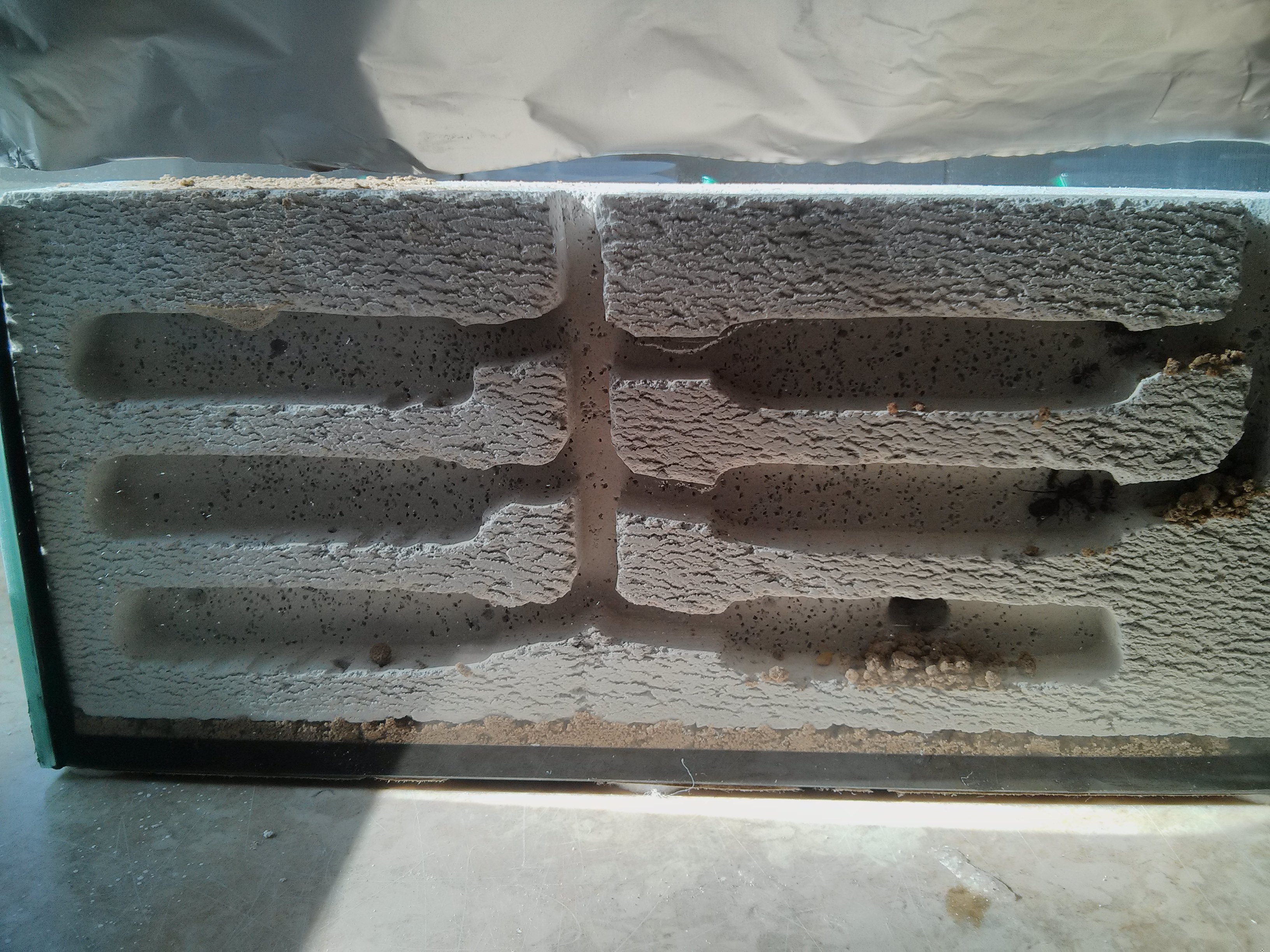 Ich hatte noch ein kleines Ytongnest, welches ich einfach mit reingestellt habe, mir ist es egal, was sie damit machen, sollen sie selbst entscheiden ob sie es als Lager fuer das Ameisenbrot nutzen oder nicht-