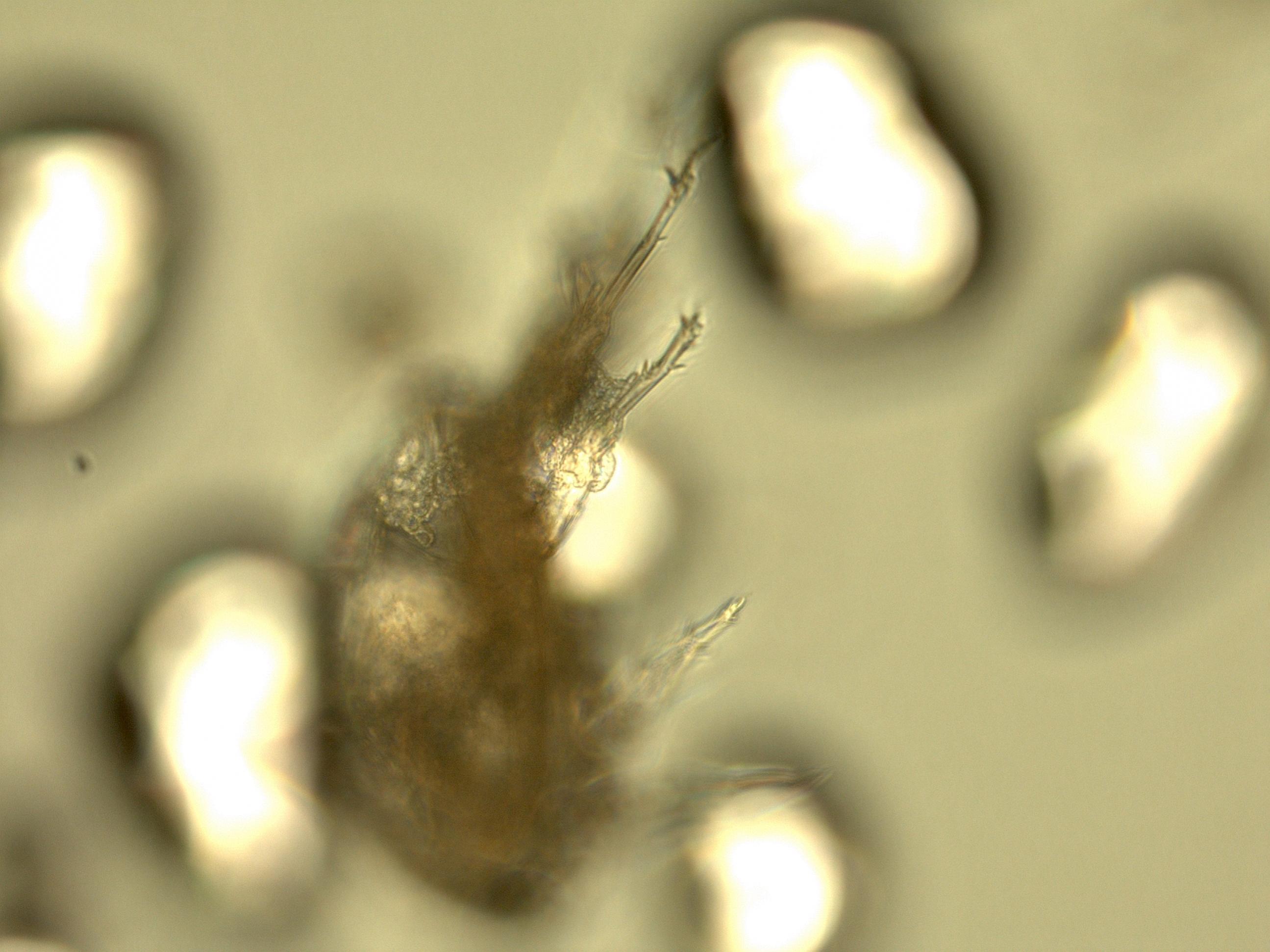Entnahme der Arbeiterinnen aus der alkoholischen Lösung (als Transportflüssigkeit) und Ablegen auf dem Objektträger. Anschließend absuchen der Oberfläche nach anhaftenden Fremdkörpern.