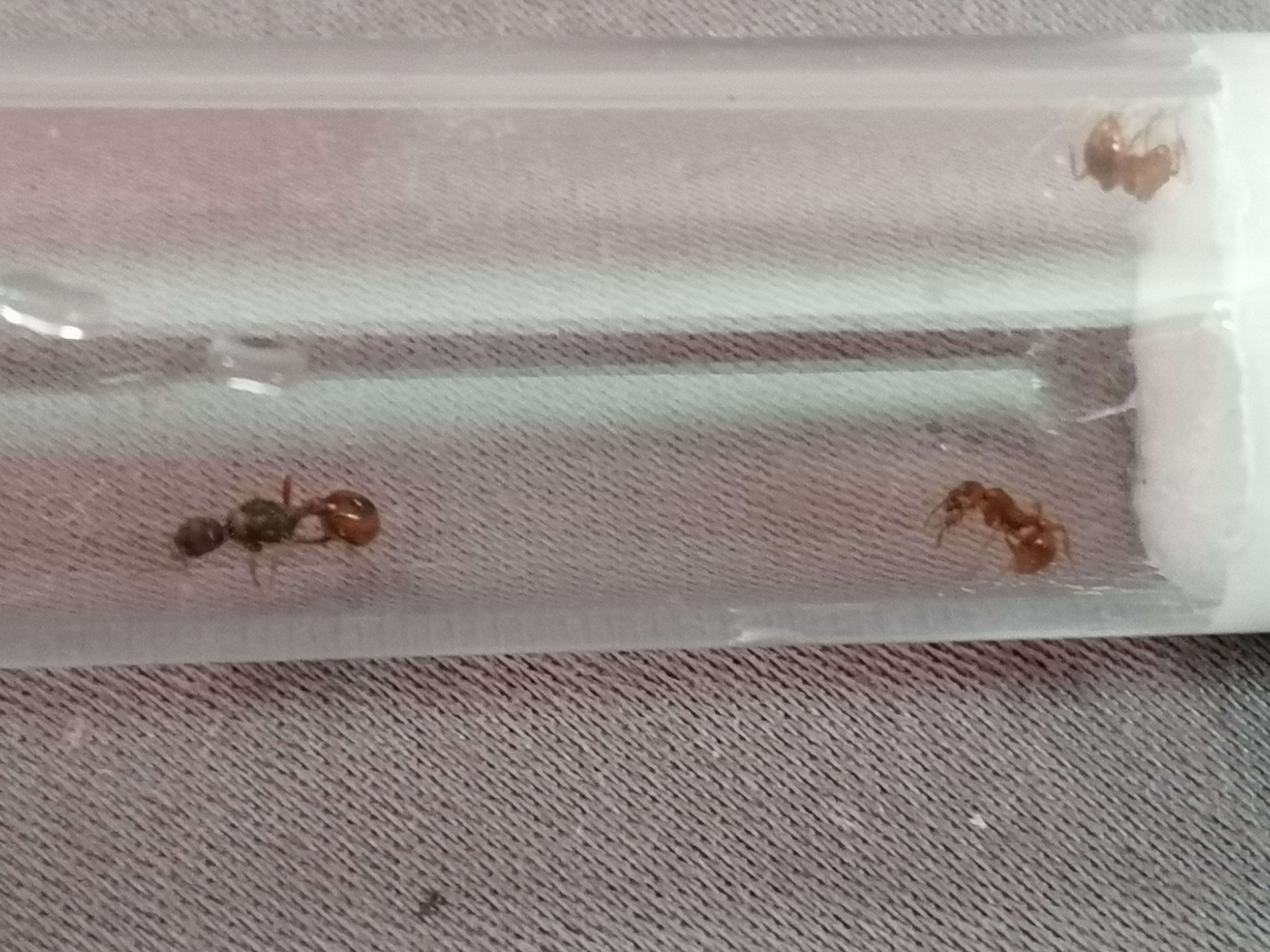 Ich nahm es als Scherz bis er heute ankam und mir ein Reagenzglas brachte mit 3 Ameisen drin. Er hat etwas falsch verstanden wie man Königinnen fängt den er hat Steine umgedreht und aus einer Kolonie die er fand und "hübsch" aussah eine Ameise genommen die ihm größer als die anderen schien und noch 2 kleinere.
