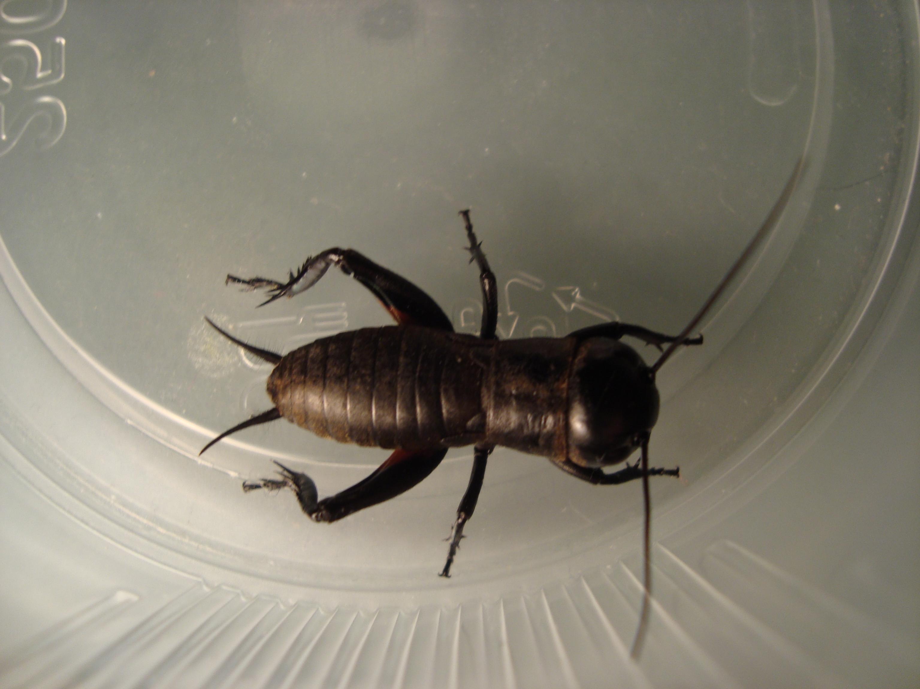 Das ist eine Feldgrille! Die ist wohl vor den kühlen Temperaturen in die Wärme geflüchtet und zum Fressen gäbe es da auch etwas. Ich denke, dass sie wie die Heimchen etwa Getreideprodukte frisst.