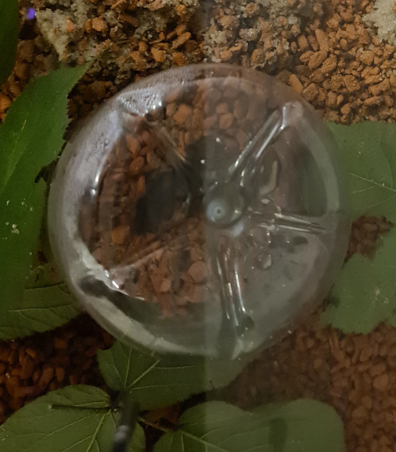 Ihnen scheint mein Setting zu bekommen und sind fleißig dabei zu Bauen. Ich verstehe nur nicht ganz was Sie bauen. Um ideale Feuchtigkeit zu gewährleisten habe ich den Pilz unter ein PET-Flaschenende gesetzt. Die Attas bauen jetzt auf dem Pilz. Haben Seramis und Sand aufgeschichtet. Pilz und VG