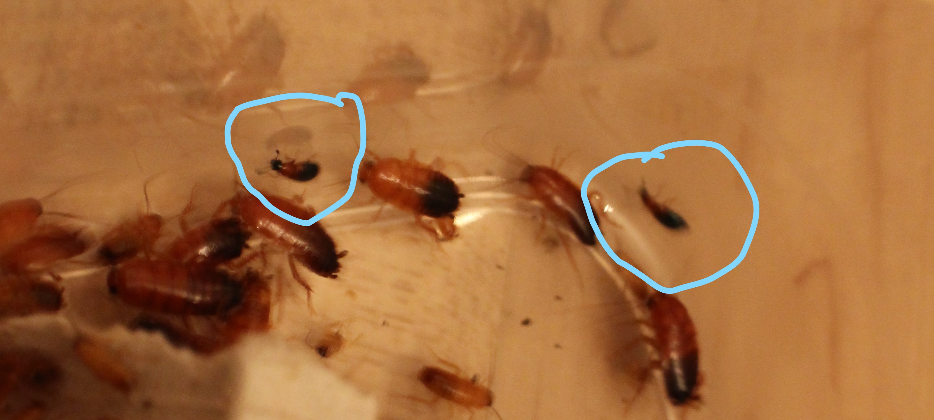 Es sind auch Baby-Schokos vorhanden. Die kommen jedoch nicht die Scheibe hoch. Die Käfer habe außerdem Flügel.