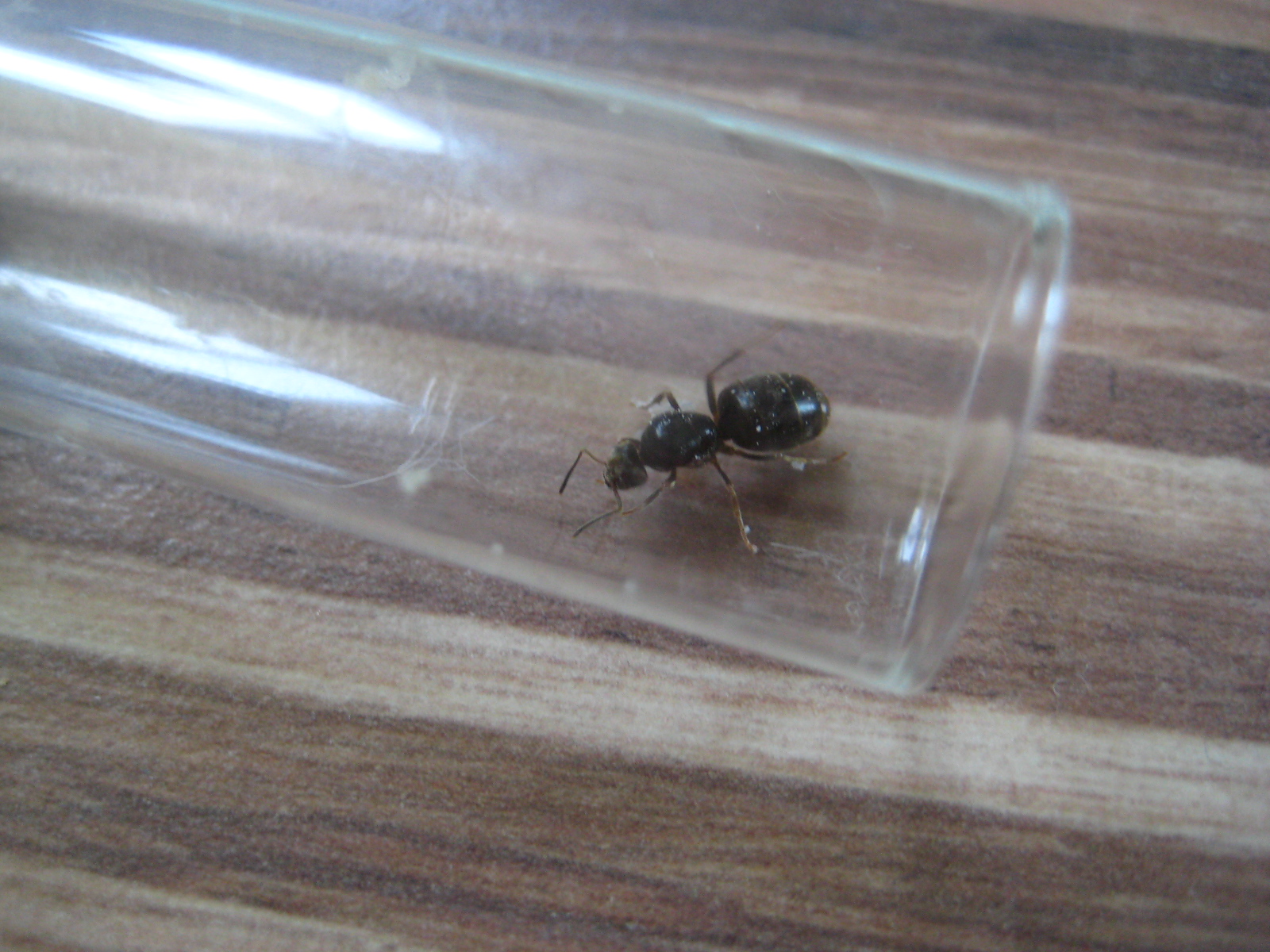 Als ich gestern meine Reagenzgläser der gründenden Lasius Arten kontrollierte und genau anschaute, vielen mir durch die rote Folie zwei fast quer übereienander liegende Gynen auf, welche ich in Pleometrose gründen lasse. Es handelt sich um Lasius cf. niger. Hm? seltsam dachte ich. Was da wohl los ist? Buckelfliege?