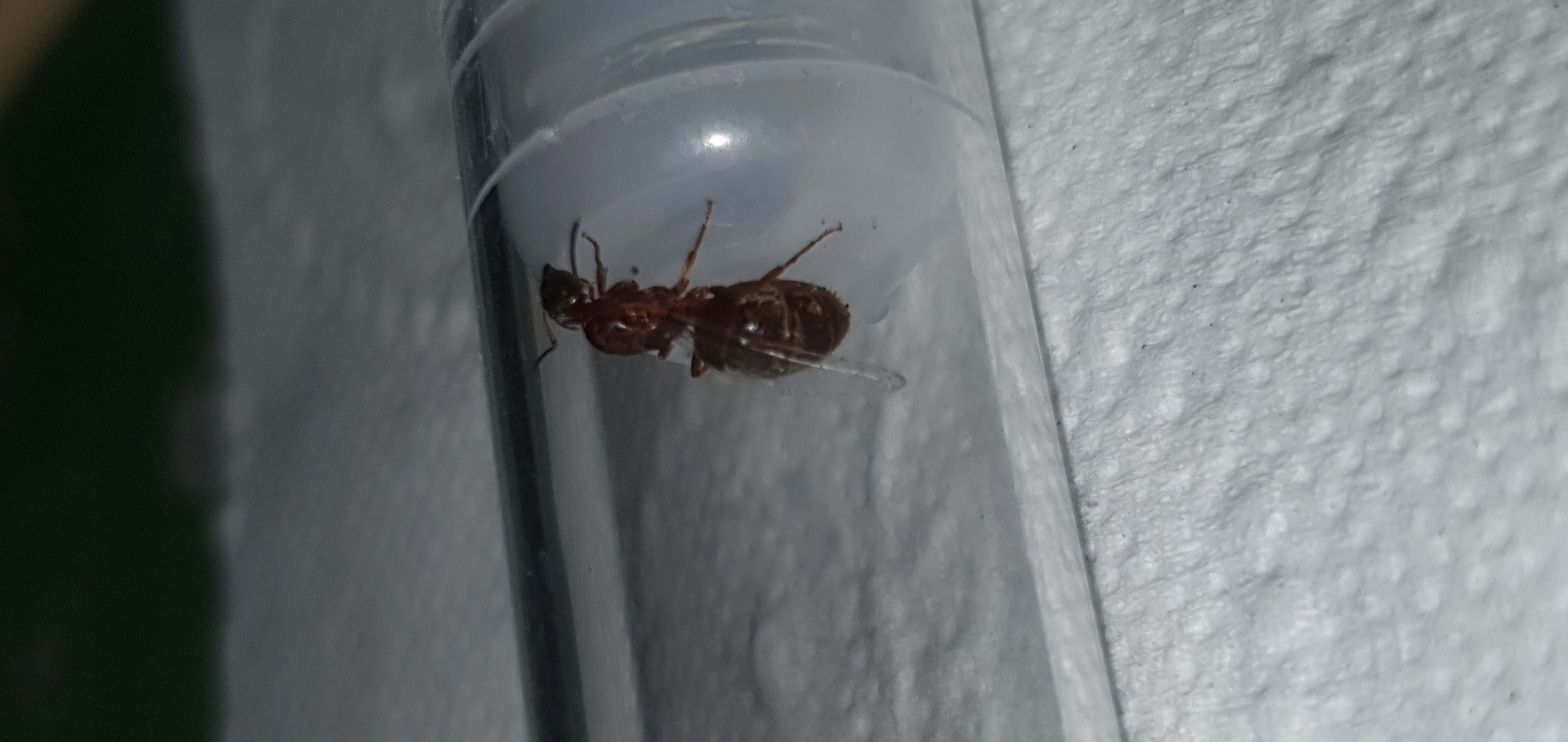 Gyne sich ruhig verhĂ€lt ist alles gut, sie braucht jetzt sehr viel Ruhe. Am effektivsten ist es bei claustral grĂŒndenden Gynen, diese in ihrem RG bei guten Bedingungen (hier etwa zwischen 19 und 26 °C und natĂŒrlich mit Wassertank) fĂŒr drei oder vier Wochen in einer dunklen Schublade zu âvergessenâ