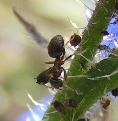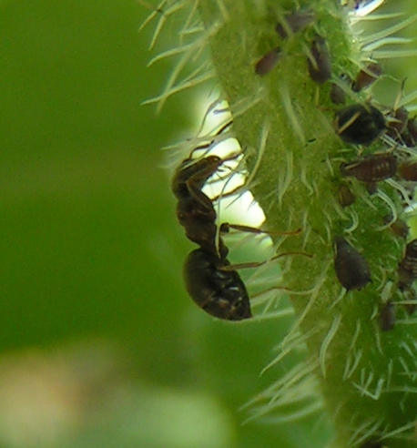 Die Ameisen halten sich auf dieser Pflanze sehr erfolgreich eine Blattlaus Zucht, mittlerweile ist die Pflanze gerade zu ĂŒbersĂ€t mit BlattlĂ€usen.