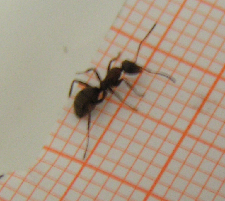 Arbeiterinnen : zw. ca.3-7mm (geschĂ€tzt, Ameise ĂŒber KĂ€stchen-Papier laufen sehen.)
