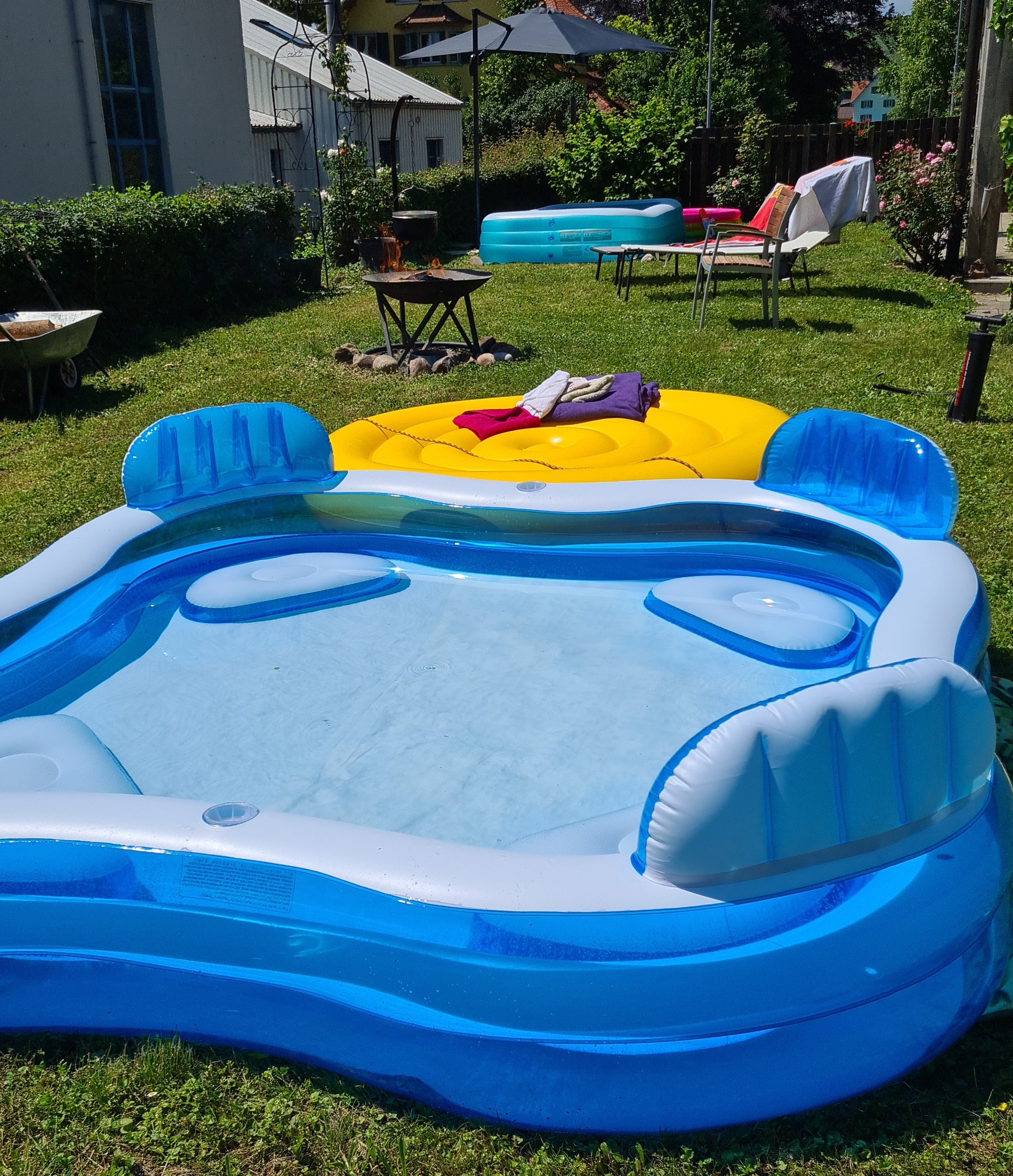 Sogar 3 momentan, Badelandschaft Trasadingen mit 2 Grillstellen und ĂĽberdachten Sitzplatz sowie unter Weinreben....