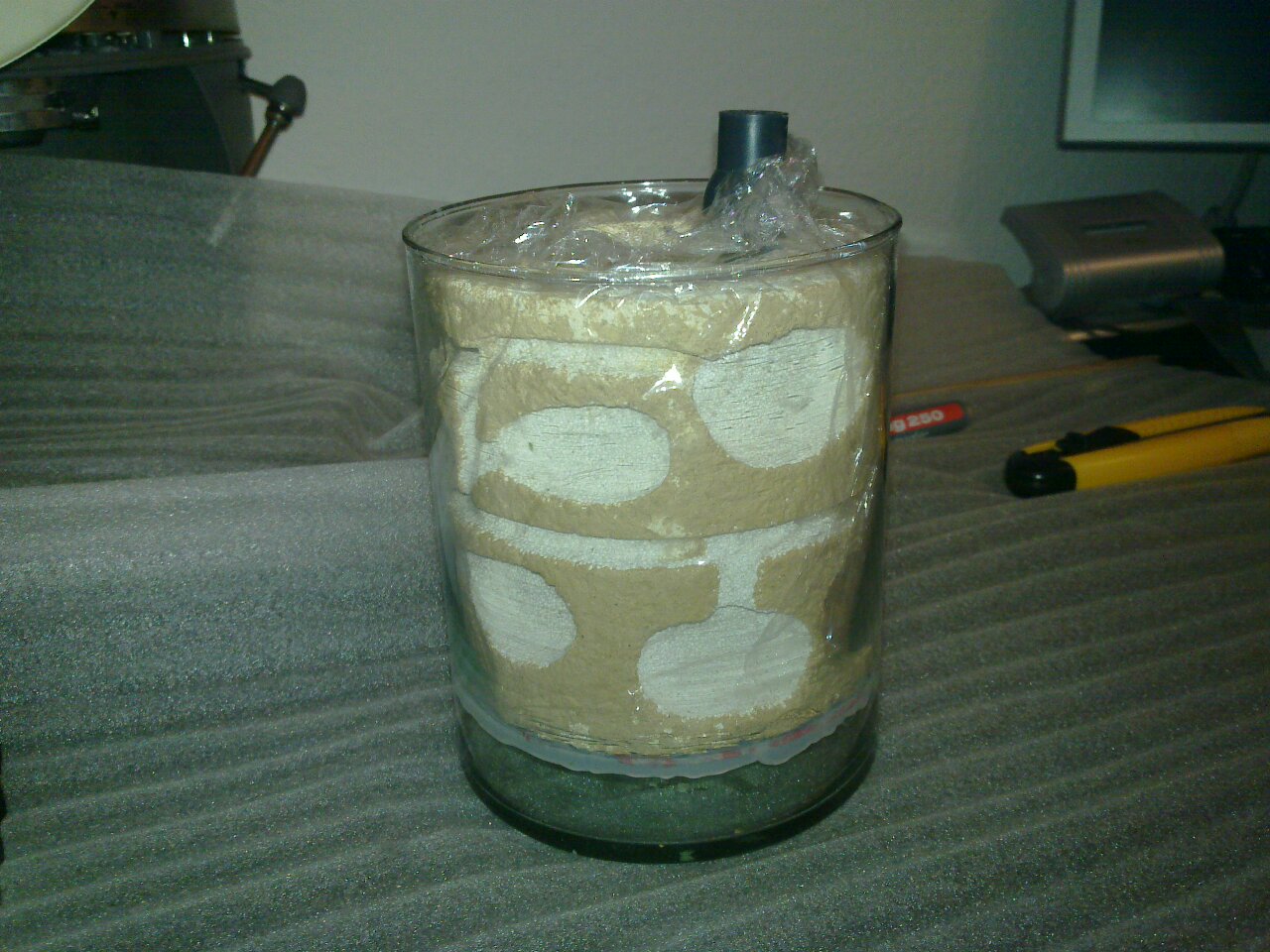 Was den BehÀlter angeht, kann ich nur raten darauf zu achten, das er richtig rund ist. Meine Vase war eher ein Zufallsprodukt und stand noch bei mir rum. Sie ist nicht richtig rund und der Boden ist auch nicht eben. Dadurch hatte ich extrem viele Probleme den YTong entsprechend anzupassen.