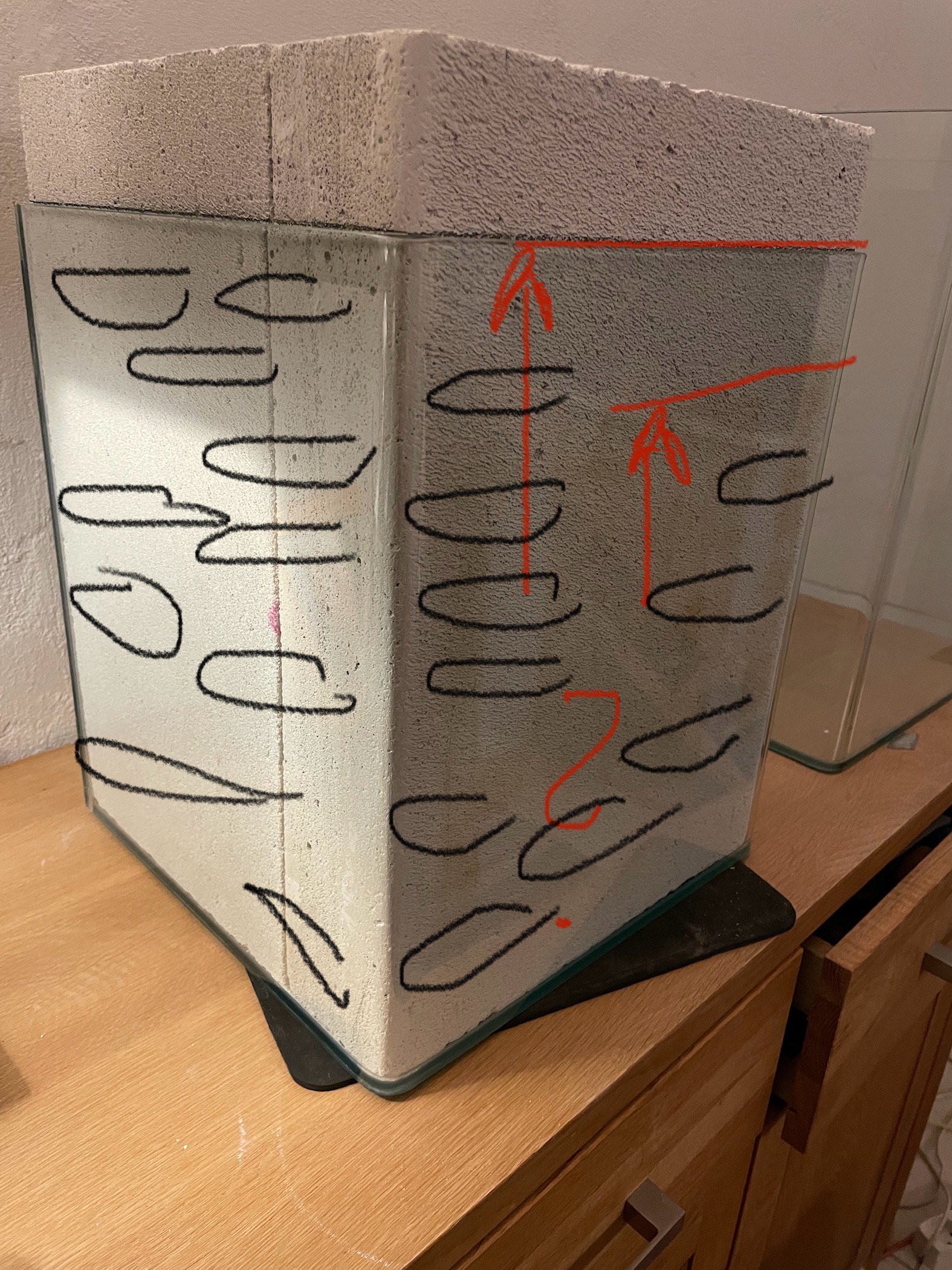 Hatte überlegt, ob es eine gute Idee wäre ins Nestbecken Tonkugeln einzufüllen, um evt. ein stabiles Klima zu erhalten? Eine Lochbohrung in den ytong zu Bewässerung ist eingeplant.