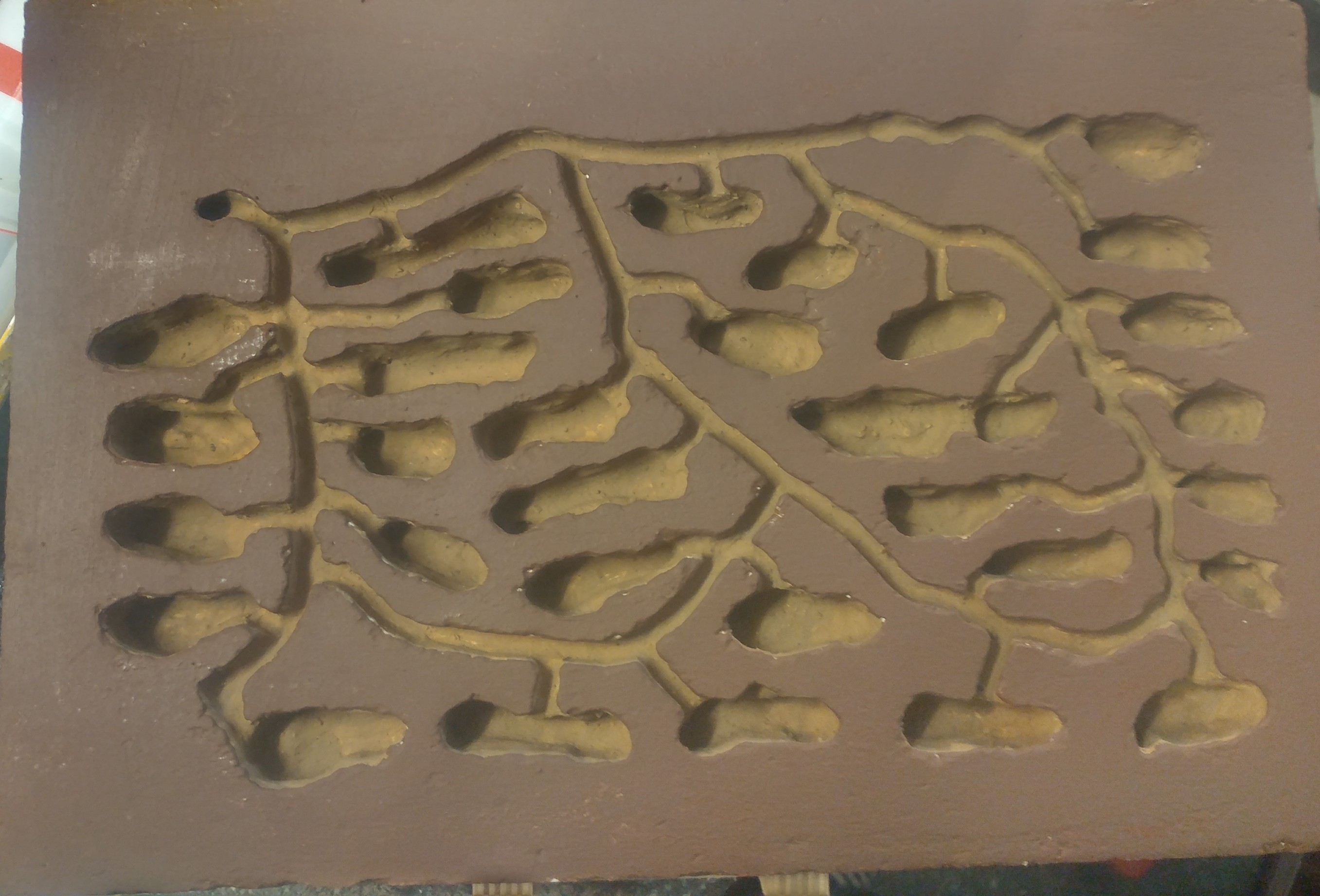 Die RĂŒckseite wurde so bearbeitet, das ich im unteren Teil des Nestes ein groĂe Kammer hatte, diese wurde mit Seramis befĂŒllt.