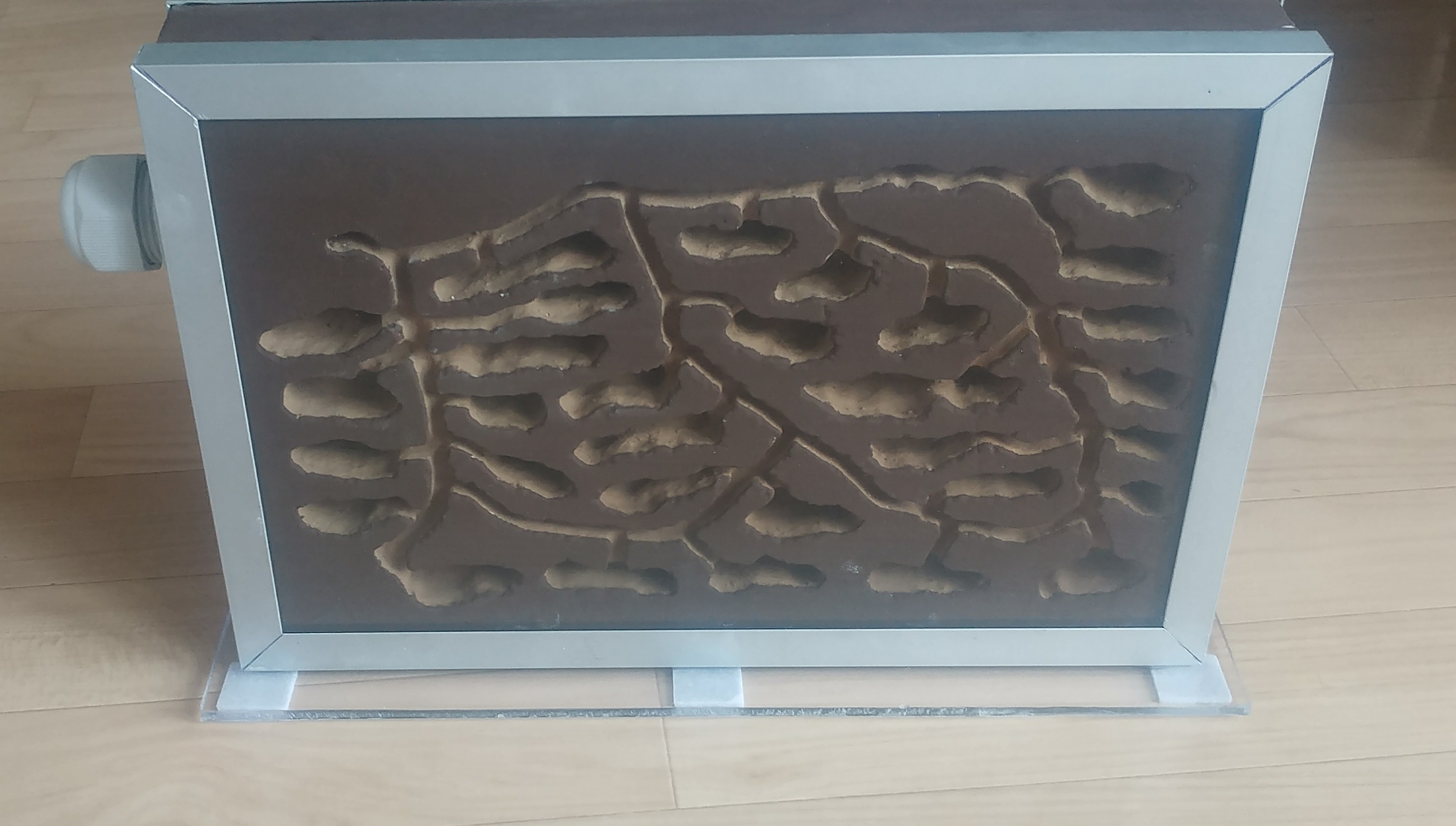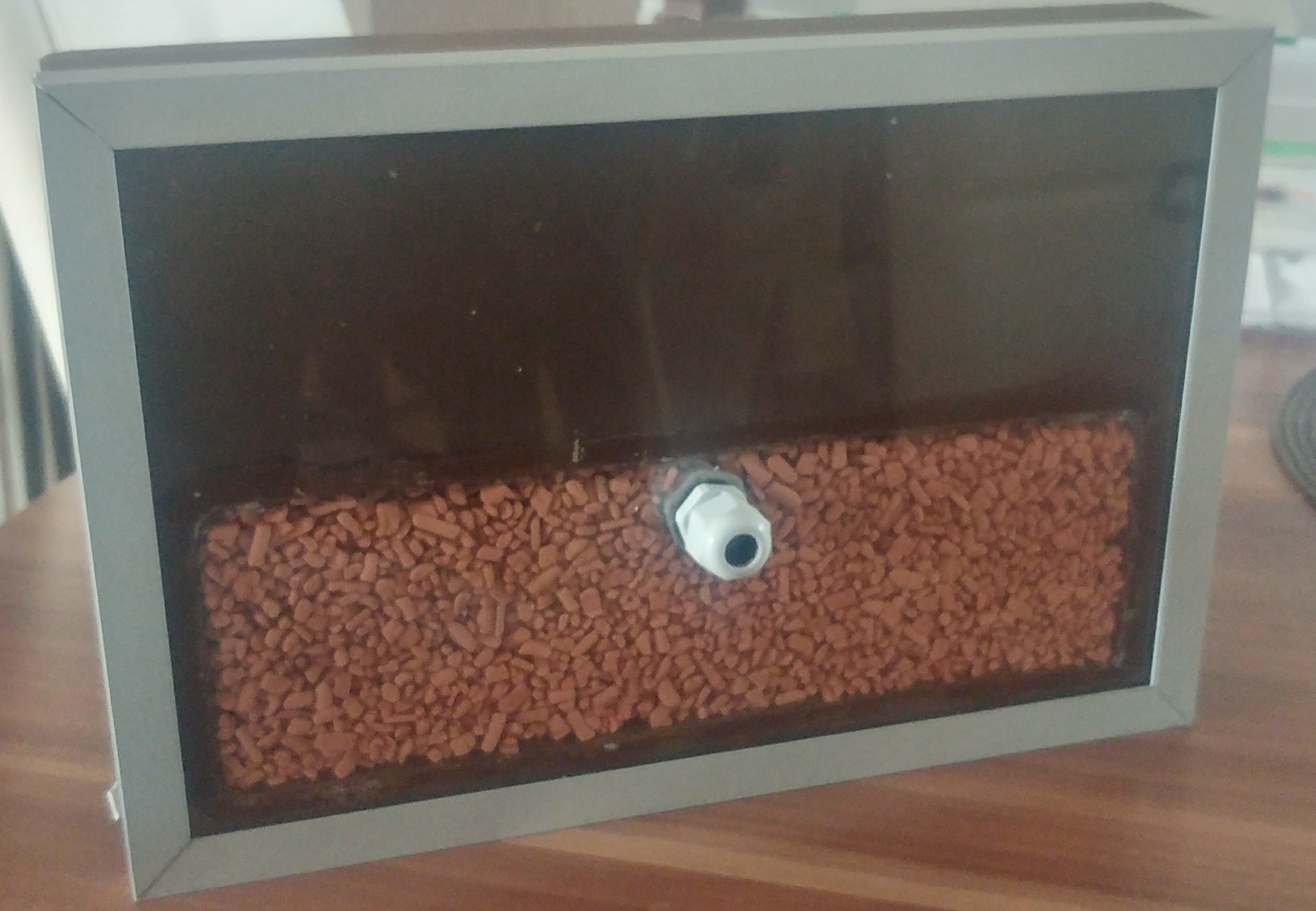 Da ich wollte das man das Nest reinigen kann, oder zur Not falls was nicht stimmen sollte mit den Ameisen, die Frontscheibe (4mm Glas) schiebbar ist.