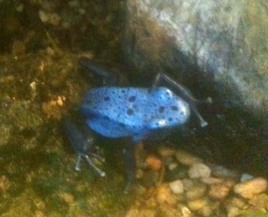 Daneben halt und züchte ich diverse Pfeilgiftfrösche (Dendrobates) und Buntfröschchen aus Madagaskar (Mantella). Im Bild Dendrobates auratus und Dendrobates tinctorius azureus.