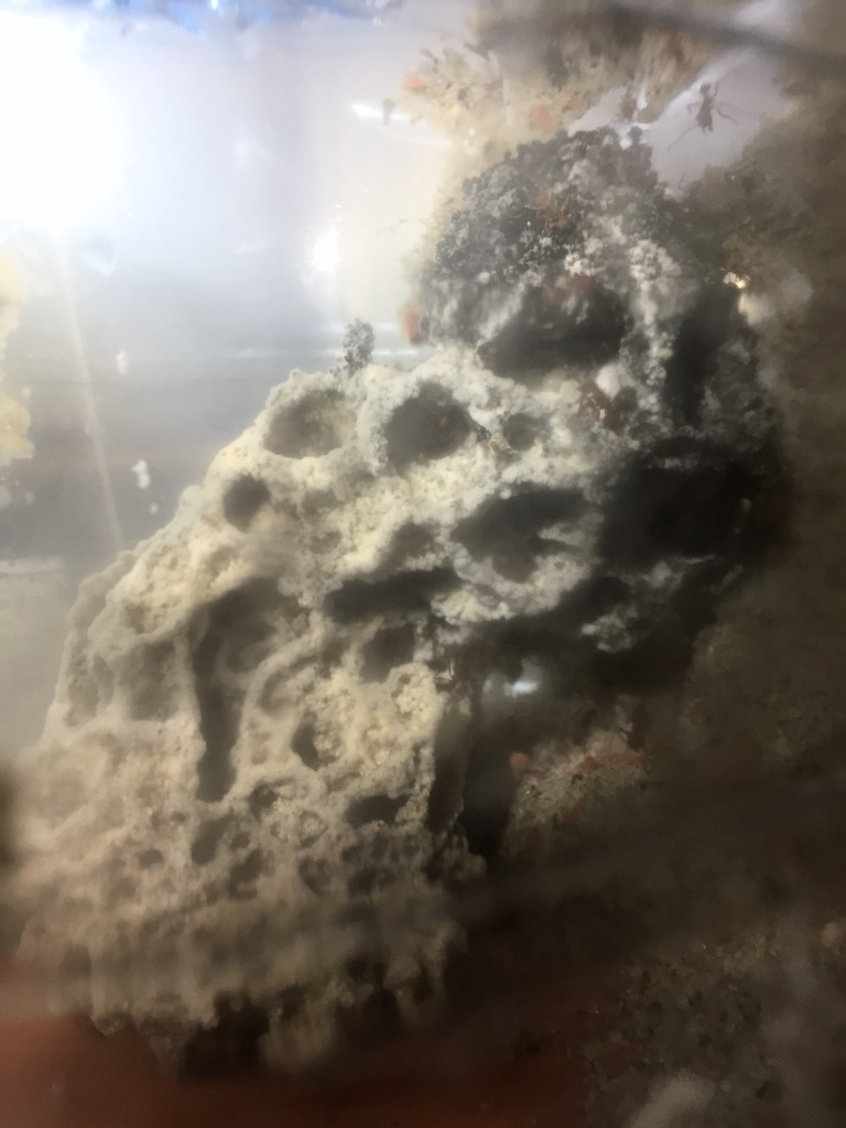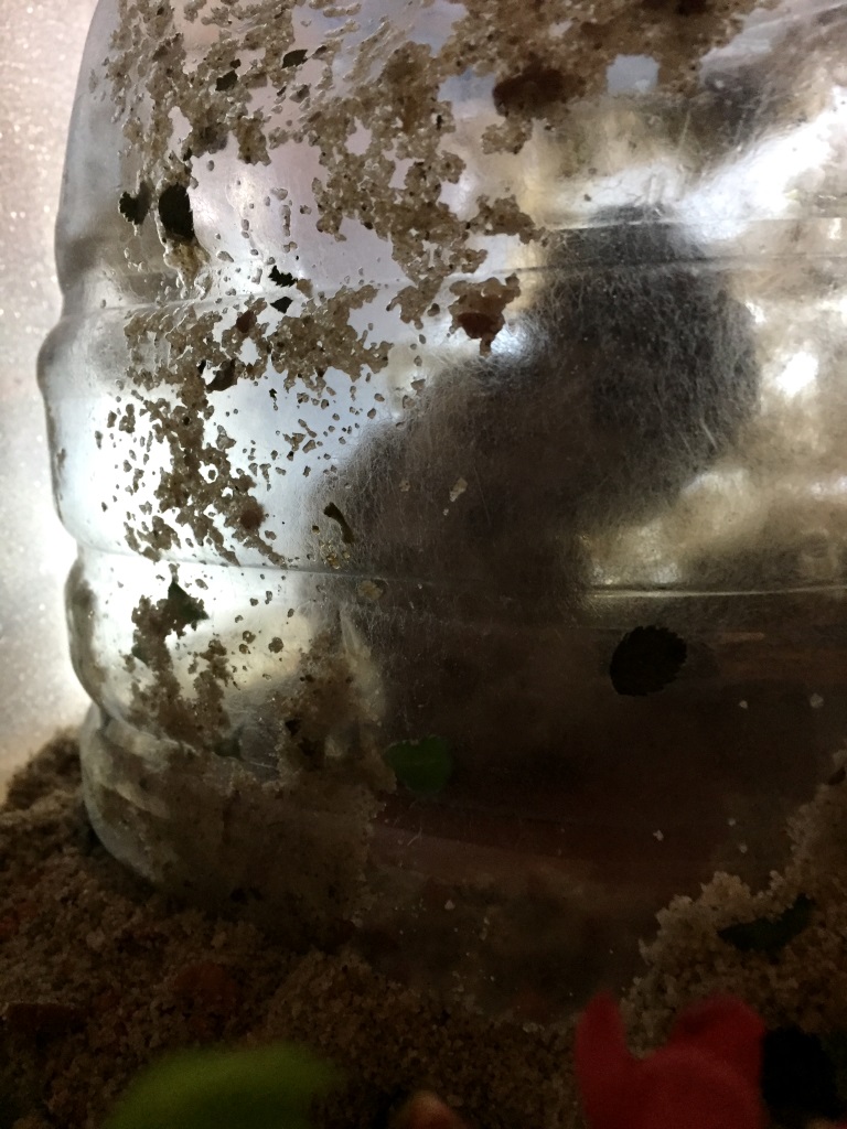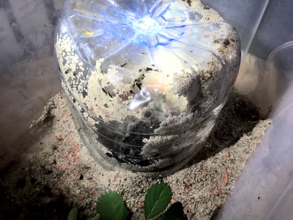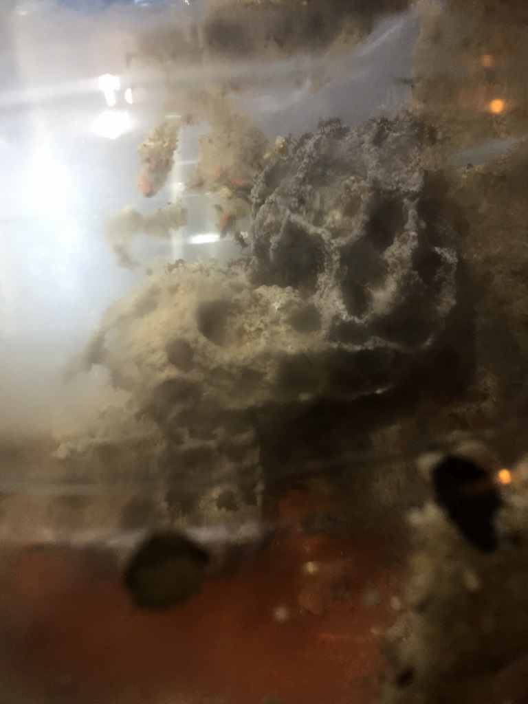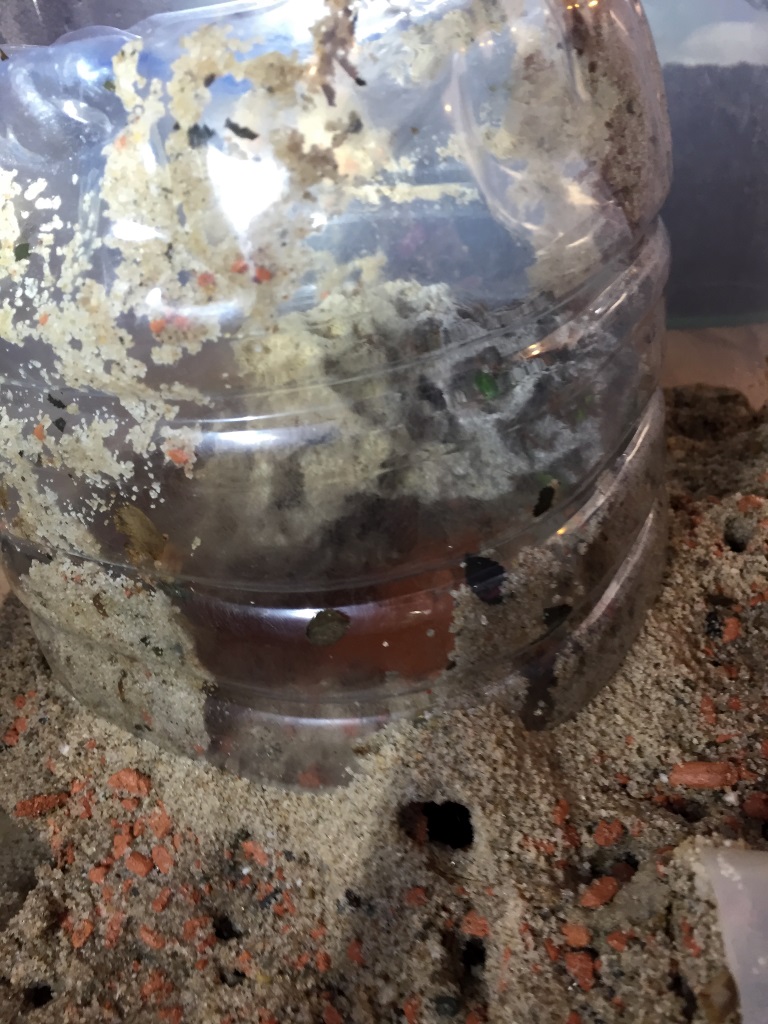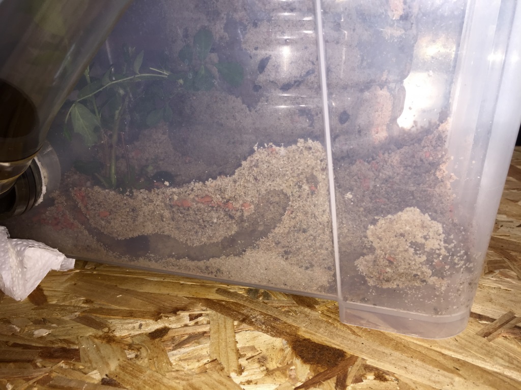 Schon vor einer Weile haben sie ihren Eingang direkt an der Pilzabdeckung komplett zu gemacht und einen "langen" Gang am Boden des Beckens gegraben, der links und rechts einen Ausgang hat.